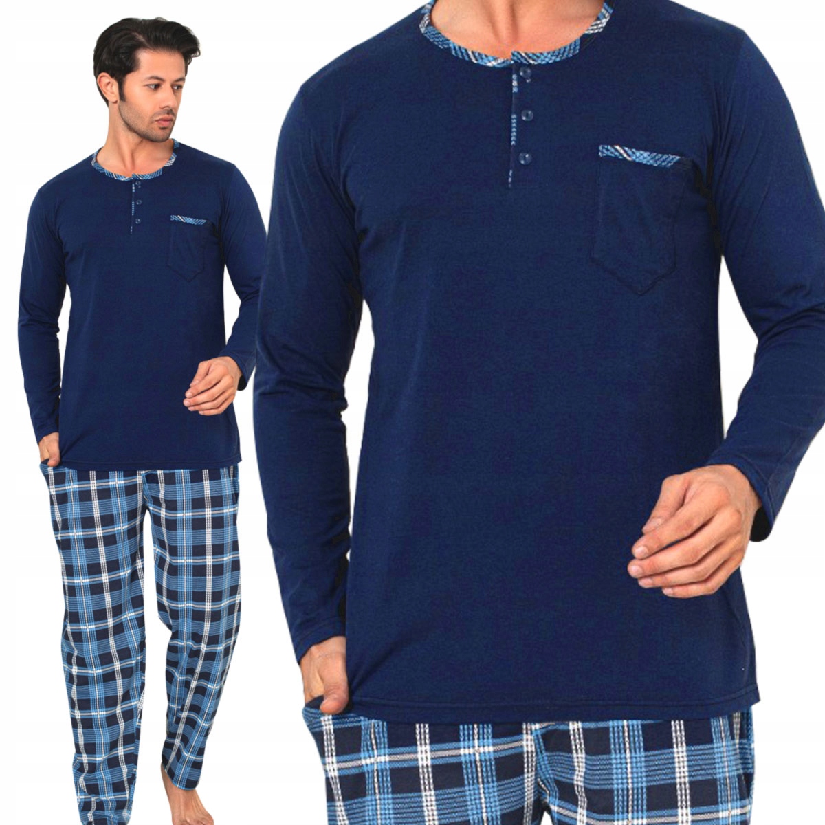 ЧОЛОВІЧА БАВОВНОВА ПІЖАМА З ДОВГИМ РУКАВОМ З КИШЕНЯМИ