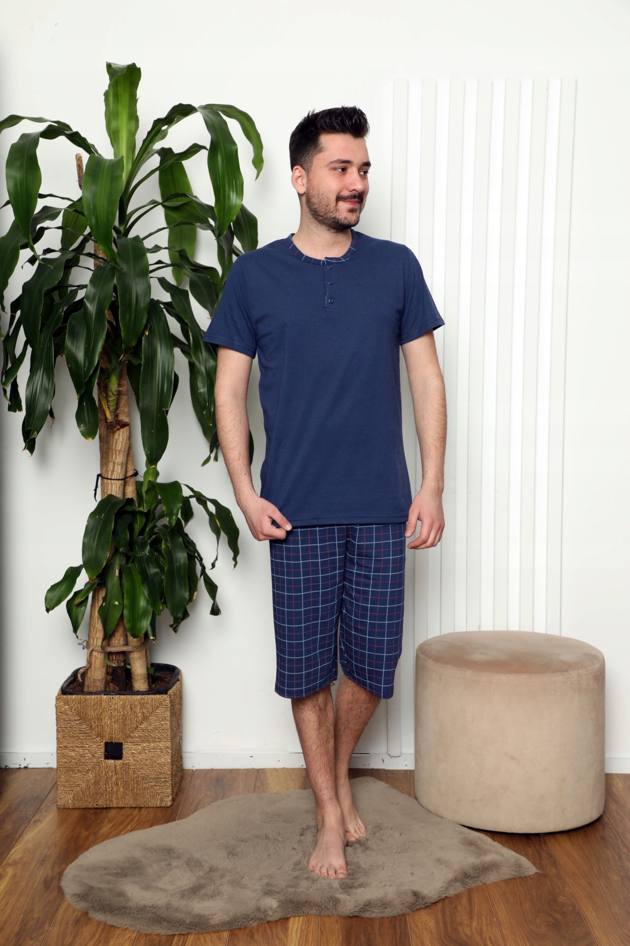 ЧОЛОВІЧА БАВОВНОВА ПІЖАМА З КОРОТКИМИ РУКАВАМИ ТА ШТАНОКАМИ