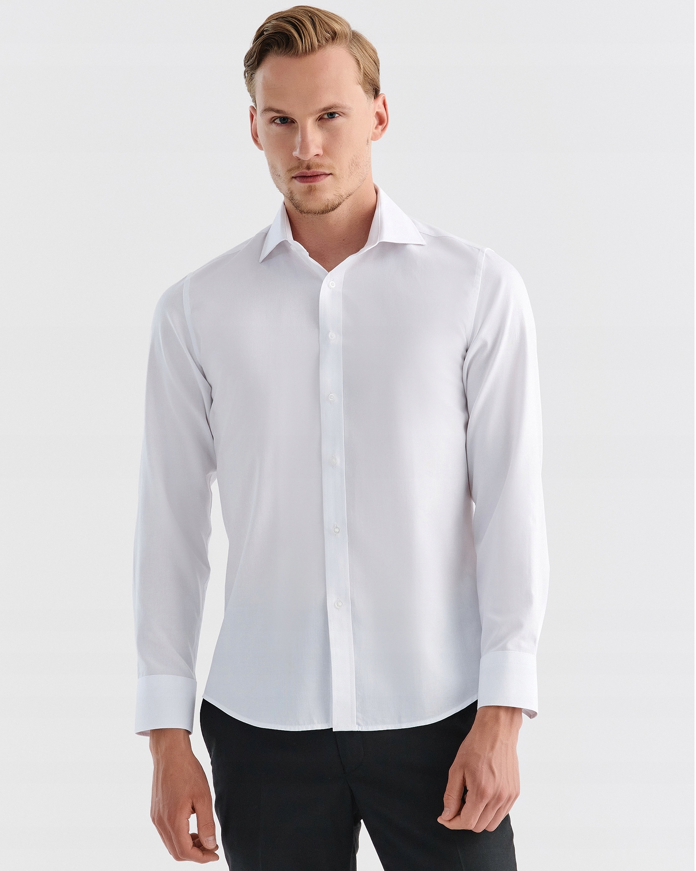 Сорочка SLIM FIT, застібається на ряд ґудзиків. Довгі рукави та комір-кент - практичне доповнення повсякденного, офіційного та вечірнього стилів. Білий колір і однорідна структура тканини дозволяють сорочці ідеально вписуватися в офіційний дрес-код. Вічний стиль сорочки ідеально гармонує з не менш класичними елементами чоловічого гардеробу - піджаком і краваткою.