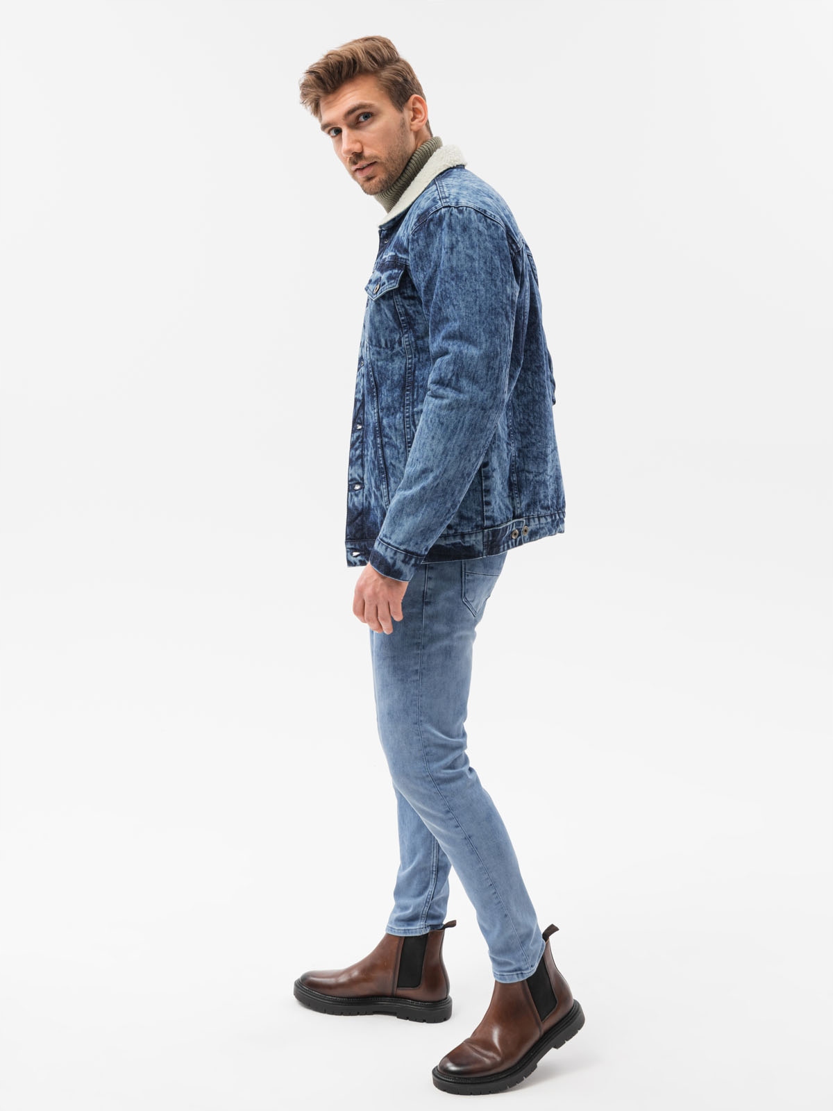 Чоловіча джинсова куртка шерпа C523 indigo L
