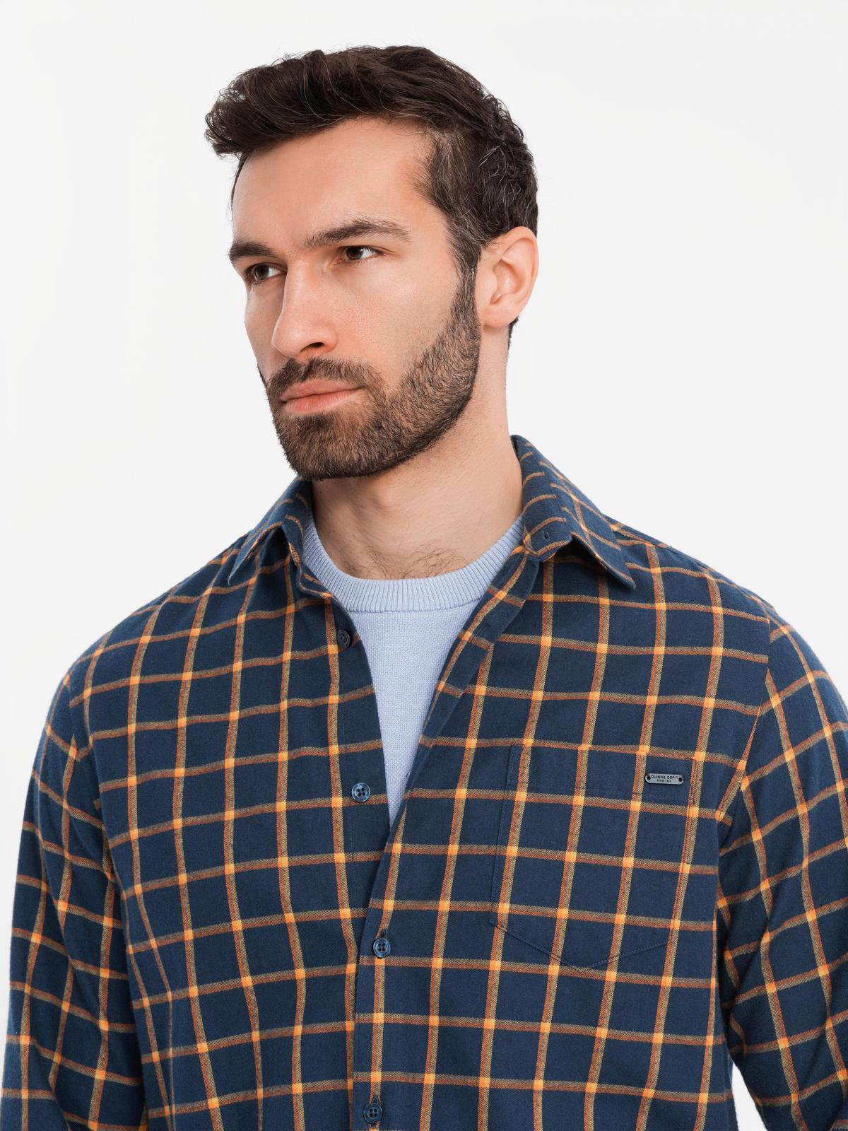Men's flannel Slim Fit plane shirt-navy-orange V1 OM-SHCS-0145 XL h2> - Color: navy blue, orange