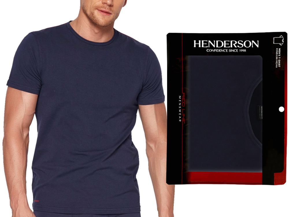 - червоний логотип HENDERSON по краю футболки, червона строчка на плечах;
