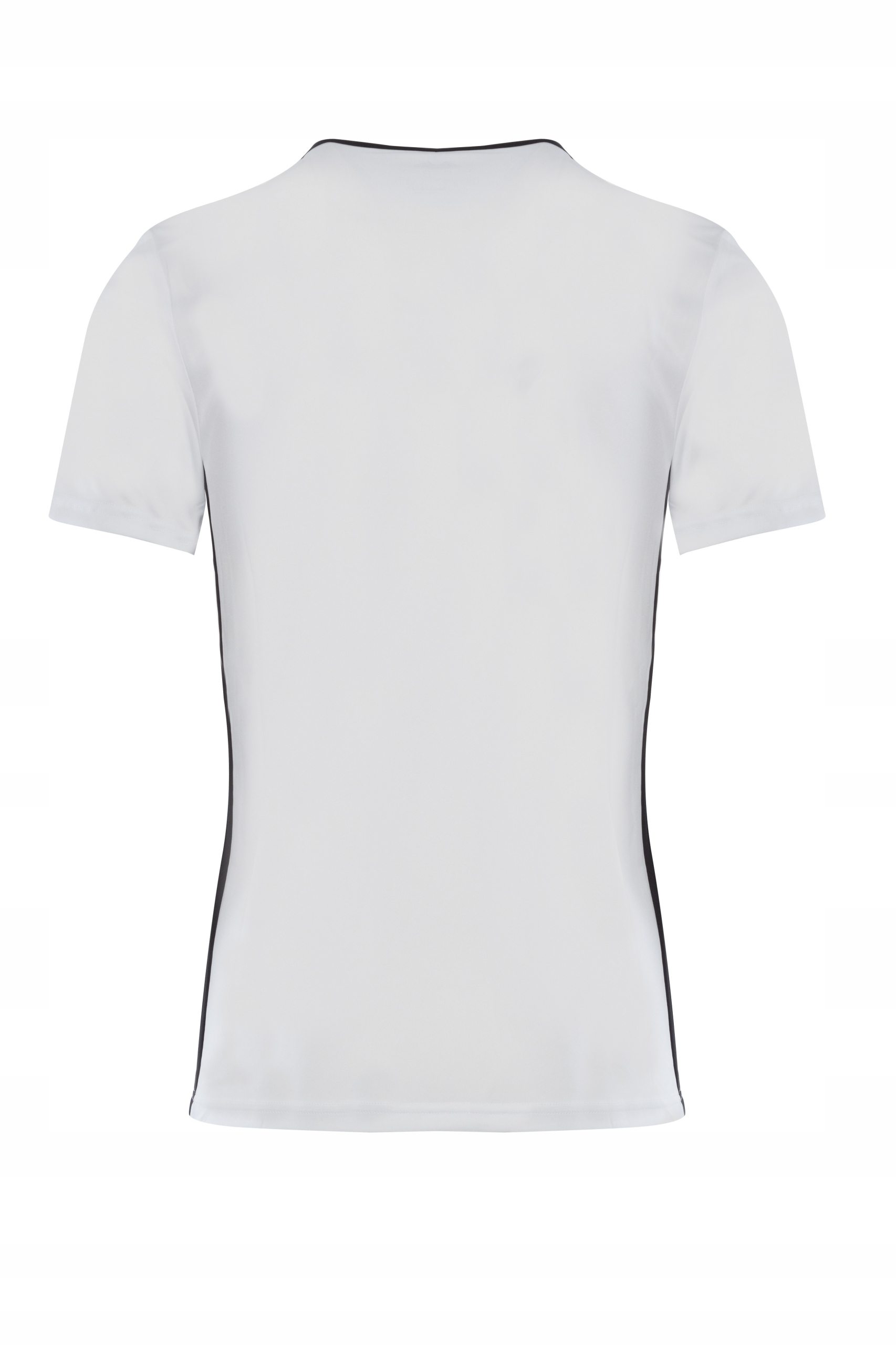 - Він виготовлений з матеріалу найвищої якості (функціональний поліестер).Ця технологія гарантує сухість під час фізичної активності, оскільки він переносить піт з внутрішньої сторони сорочки на зовнішню. Додаткові сітчасті панелі, вбудовані з боків, покращують вентиляцію. Це забезпечує максимальний комфорт використання