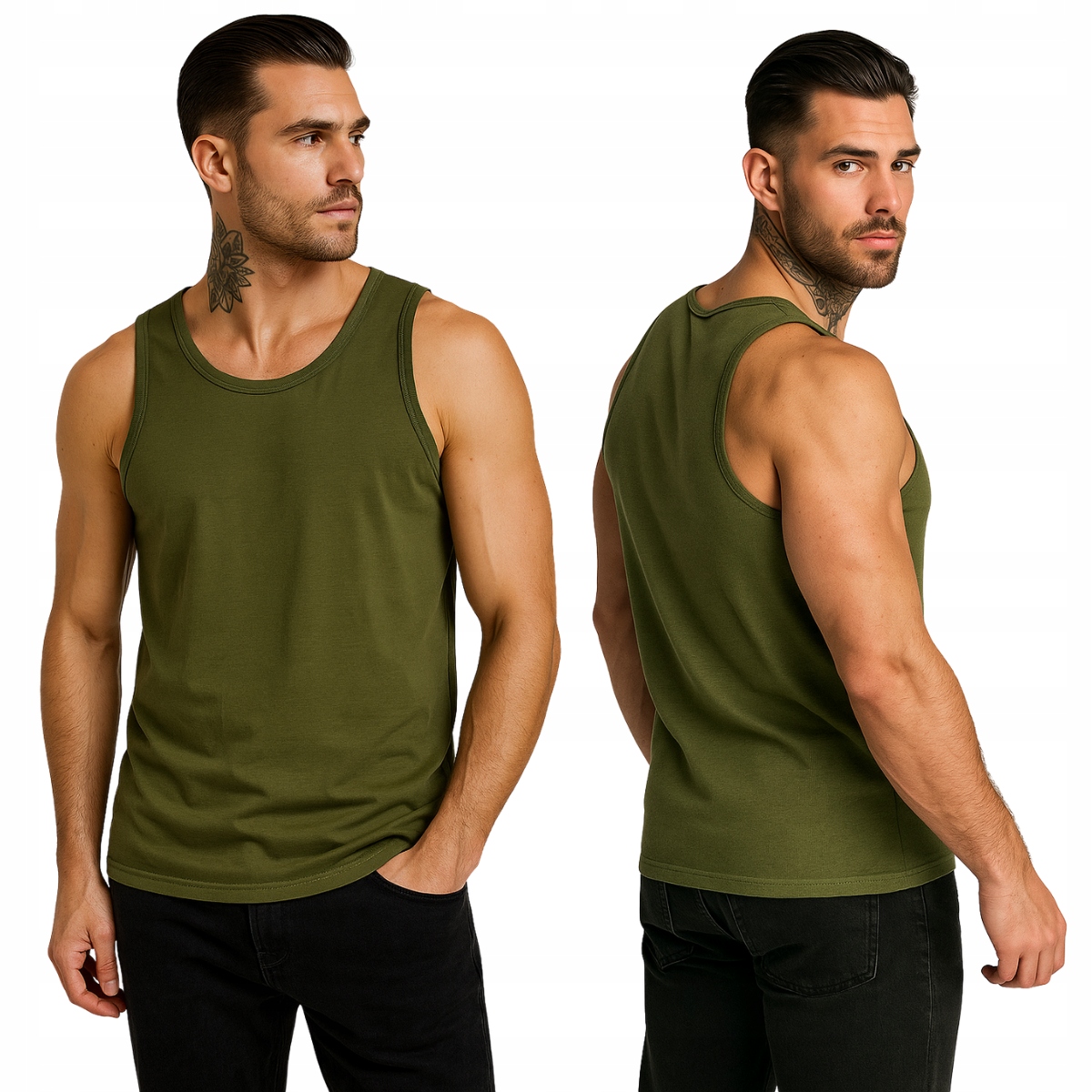 ЧОЛОВІЧА ФУТБОЛКА БЕЗ РУКАВ - КОЛІР ХАКІ - БЕЗРУБКА - НА БРЕТЛЯХ XXL