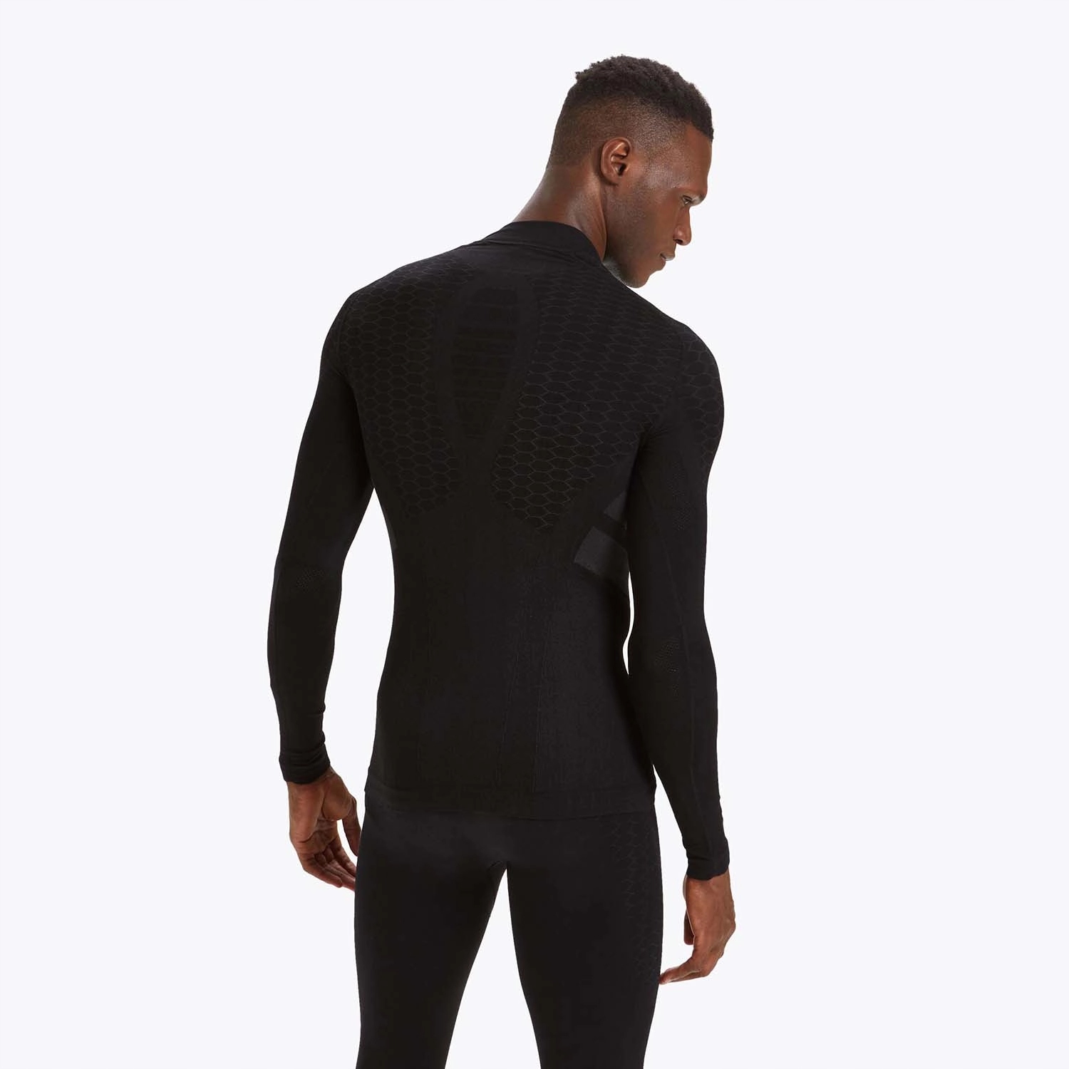 В осінньо-зимовий період тепловий комфорт – пріоритет. Термоактивна чоловіча футболка забезпечить це під час будь-яких фізичних навантажень. Зроблена в Італії, термофутболка з високим коміром і довгими рукавами, виготовлена з м’якої легкої суміші поліаміду та поліпропілену. Виготовлений з легких швидковисихаючих волокон HIDDEN POWER. Гнучкі волокна гарантують ідеальну посадку по фігурі. Спеціальні вентиляційні зони - виконують подвійну функцію збереження тіла сухим завдяки технології DIA BREATH.