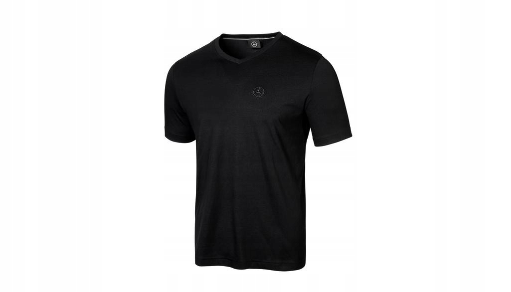 Чоловіча футболка Mercedes-Benz. Маленький V-подібний виріз. Стримана складка на шиї зі сріблясто-сірою смугою. Сучасний крій.