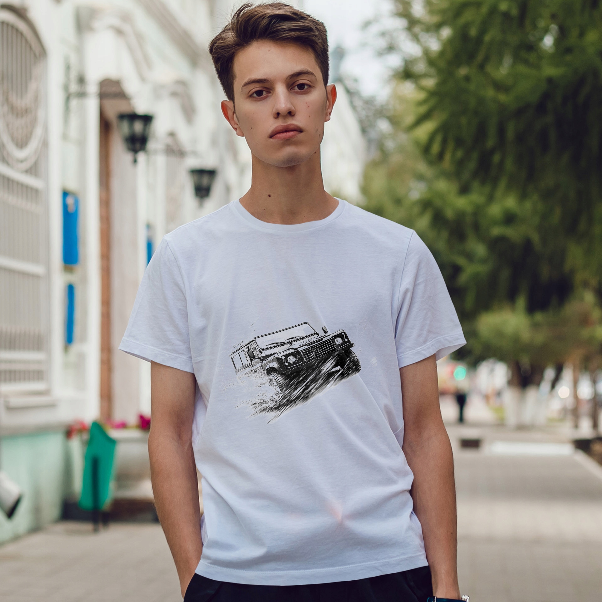 Стильна чоловіча футболка з унікальним принтом, ідеальна для кожного автолюбителя. На принті представлена детальна графіка, виконана в техніці напівтонів, що додає глибини та динаміки.