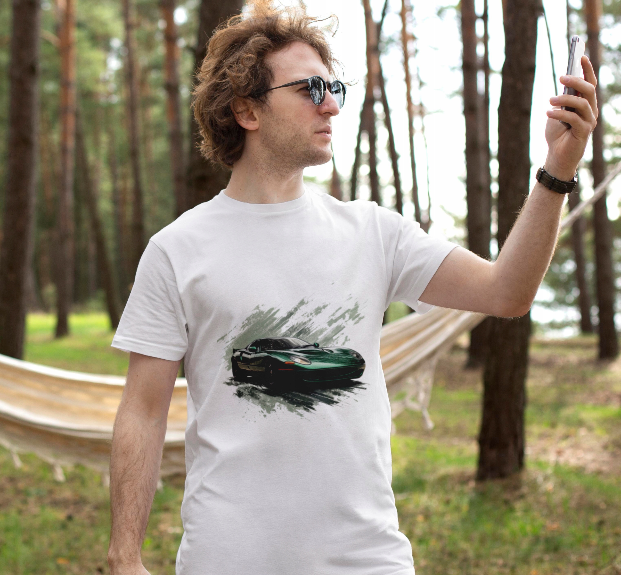 Стильна чоловіча футболка з унікальним принтом знакового автомобіля, ідеально підходить для кожного ентузіаста автомобіля. Друк показує детальну графіку знакового транспортного засобу, виготовлену в техніці напівтонного, що додає глибини та динаміки, залучаючи око та підкреслюючи ваш стиль.