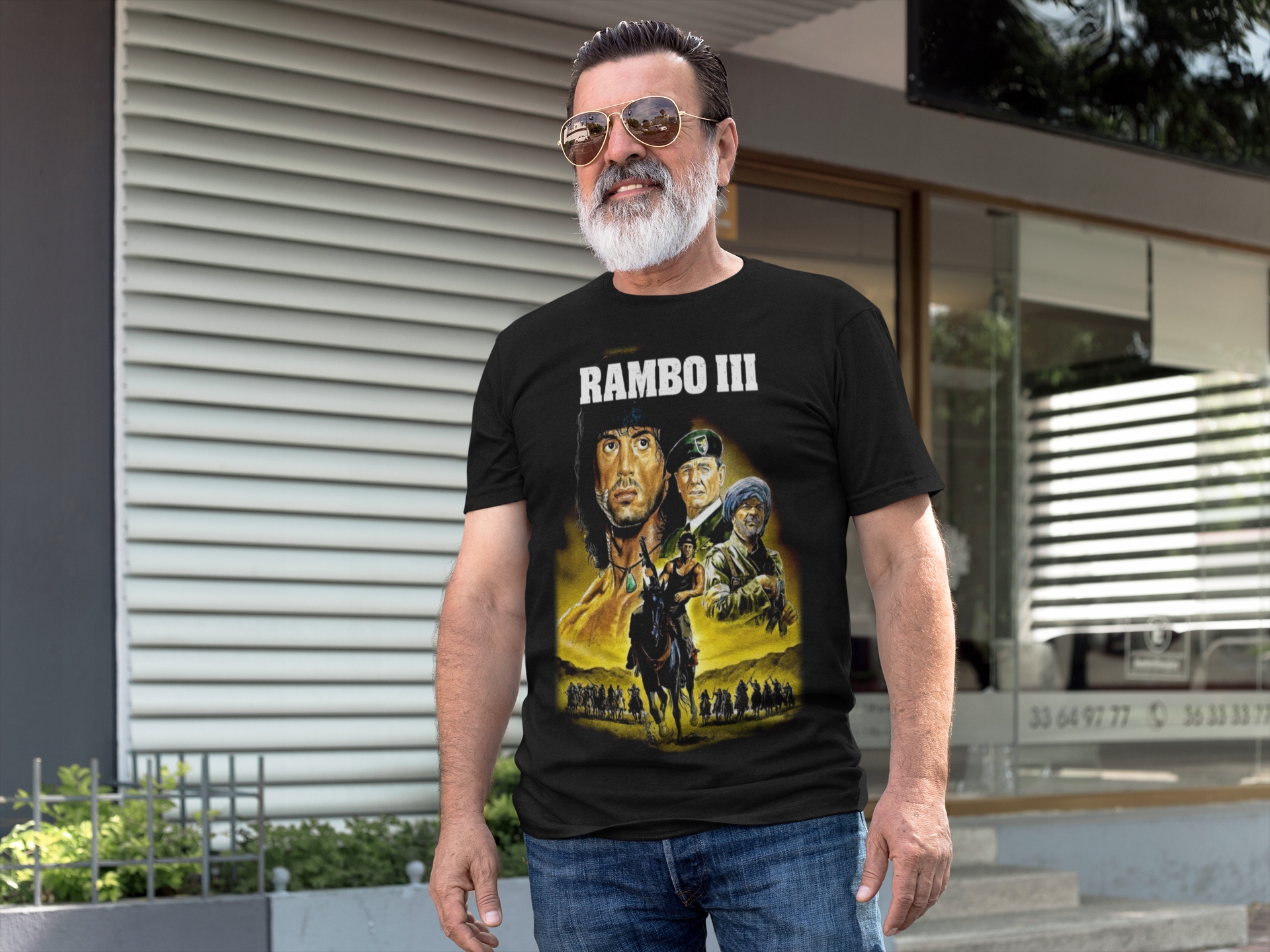 Ласкаво просимо на наш аукціон! Пропонуємо унікальну бавовняну футболку з оригінальним принтом з фільму "Рембо". Це надзвичайний одяг для справжніх шанувальників бойовика.