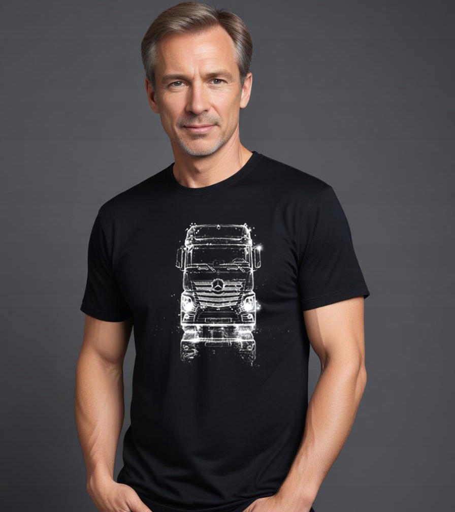 Представляємо оригінальну чоловічу футболку із зображенням культової моделі вантажівки Mercedes-Benz Actros.