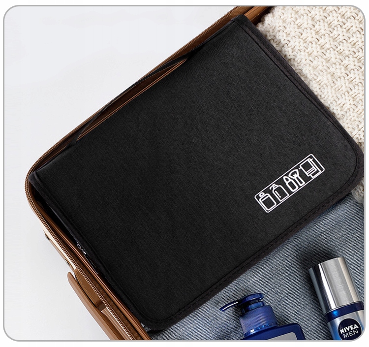 Надзвичайно зручна і водночас містка косметичка сірого кольору, яку можна повісити як зручний органайзер b>. Ідеальне рішення як для жінок, так і для чоловіків, які хочуть комфортно доглядати за собою під час подорожі. Він ідеально тримає косметику в порядку, а в розкладеному вигляді робить кожну косметику «під рукою».