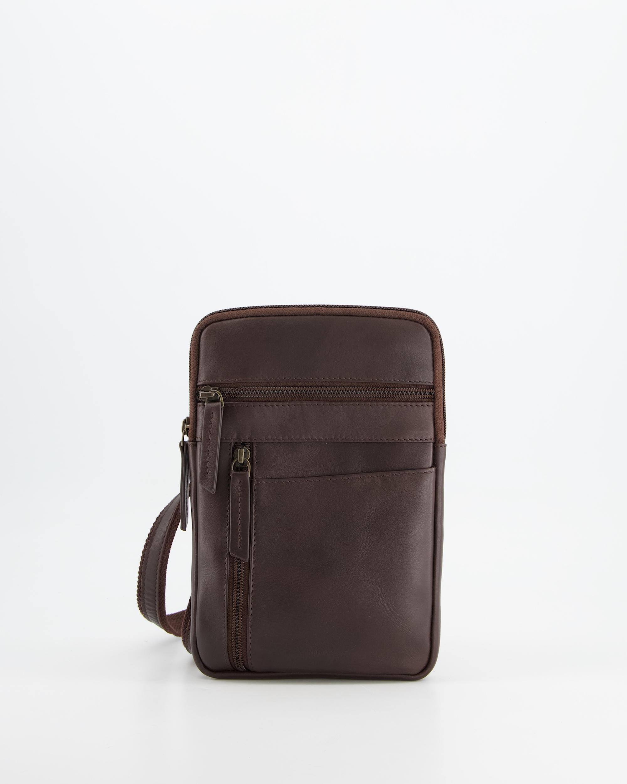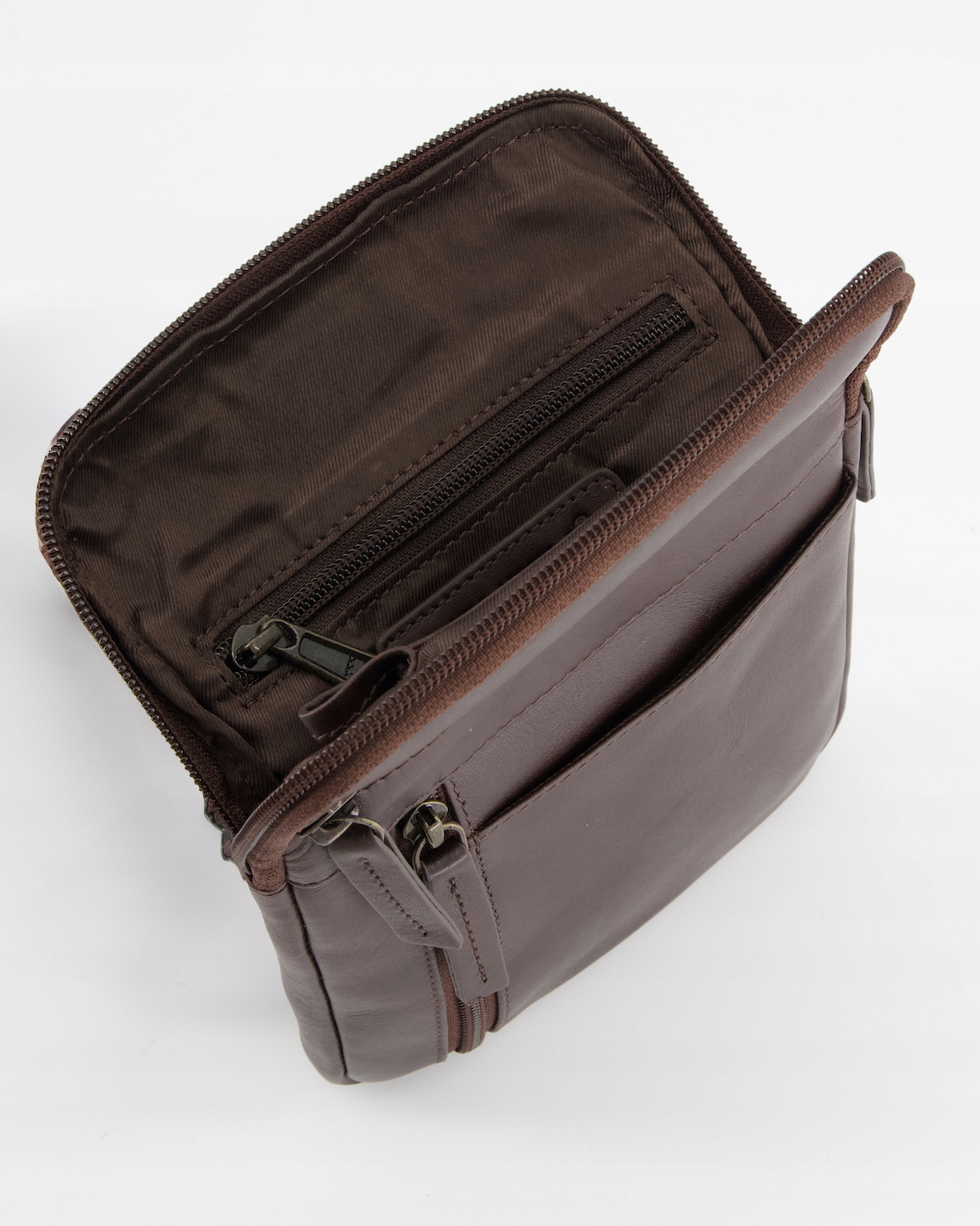 Чоловіча коричнева сумка з м'якої шкіри природний. Практична модель з трьома зовнішніми кишенями виправдає очікування чоловіків де важлива якість і класичний дизайн. Сумка має дві внутрішні кишені та нашивку з тисненим логотипом.