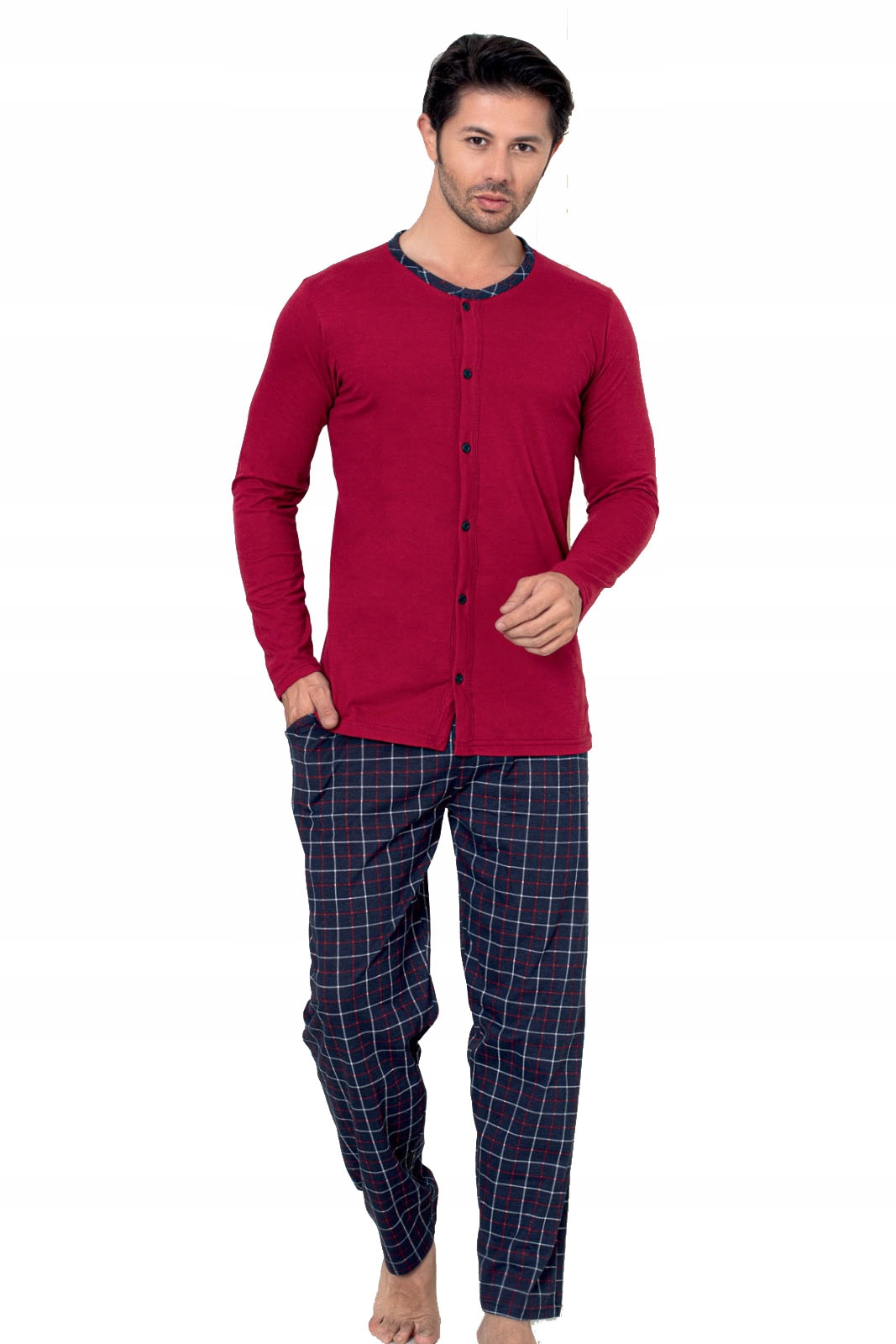 ⭐Чоловіча піжама з сорочкою на гудзиках з довгими рукавами та довгими штанами з кишенями.