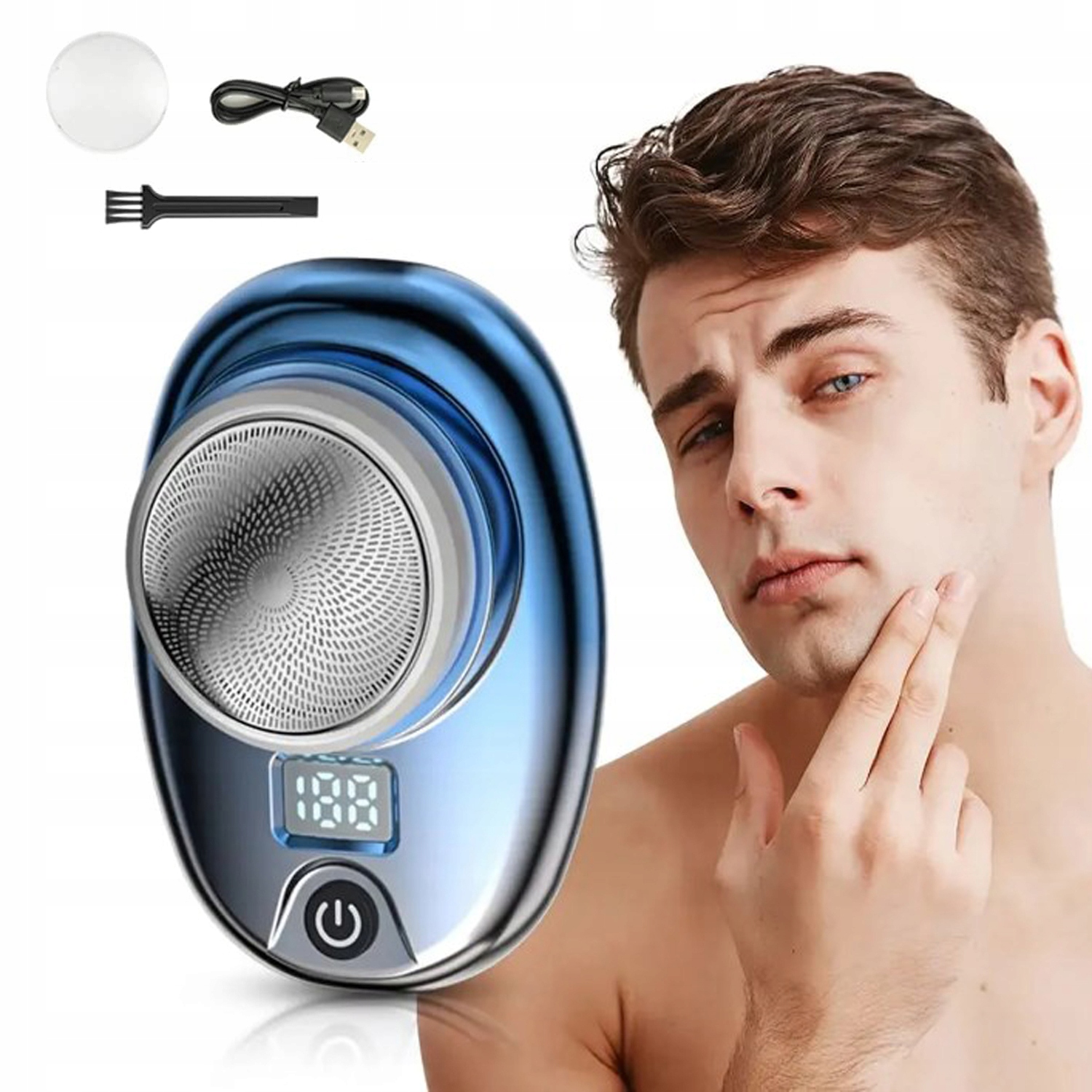 ЧОЛОВІЧА МІНІ-БРИТВА ПОРТАТИВНА ЕЛЕКТРИЧНА БРИТВА ДЛЯ БОРОДИ СИНЯ USB 150mAh