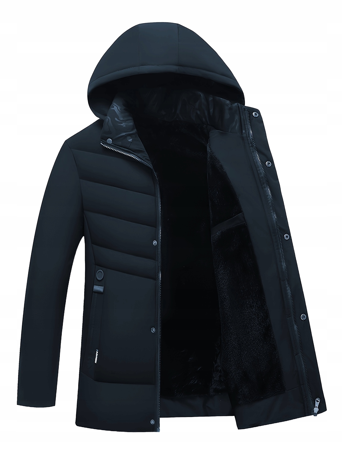 ЧОЛОВІЧА МОДНА ЗИМОВА КУРТКА, ПУХОВА, СТЬГАНА ДОВГА ПАРКІ З КАПЮШОНОМ