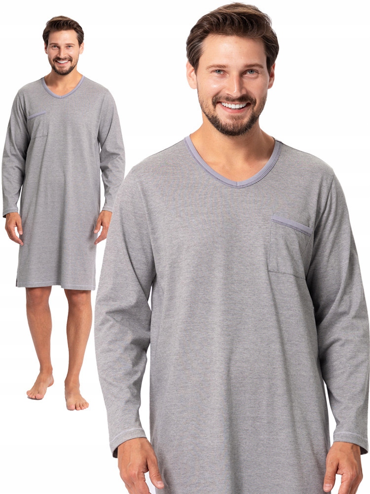 Дуже зручна чоловіча сорочка з V-подібним вирізом і довгими рукавами. Використання благородної тканини «nerve» робить його надзвичайно зручним і приємним на дотик, а засинати в ньому стає суцільним задоволенням. Високу якість сорочки підкреслює V-подібний виріз, оброблений контрастною окантовкою, рукава і низ сорочки оброблені рівноконтрастними нитками, а практична кишеня прикрашена витонченим елементом у вигляді різнокольорової стрічки. Розрізи з боків сорочки забезпечують необмежений рух.