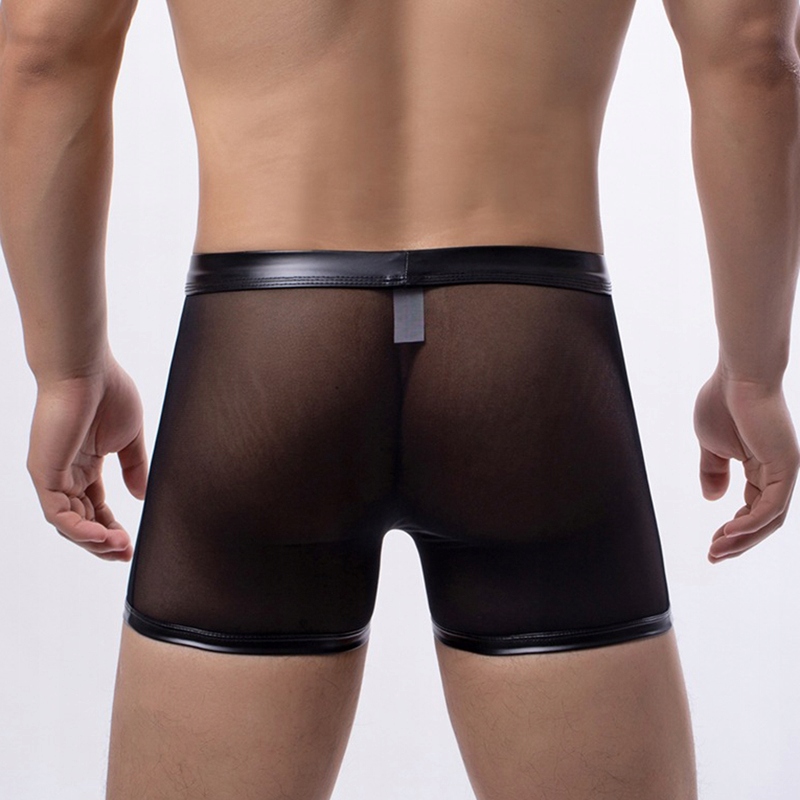 Сексуальні чоловічі боксери з відрізком спереду - чорні PU-Leder + Mesh, розмір XL 🔥🖤