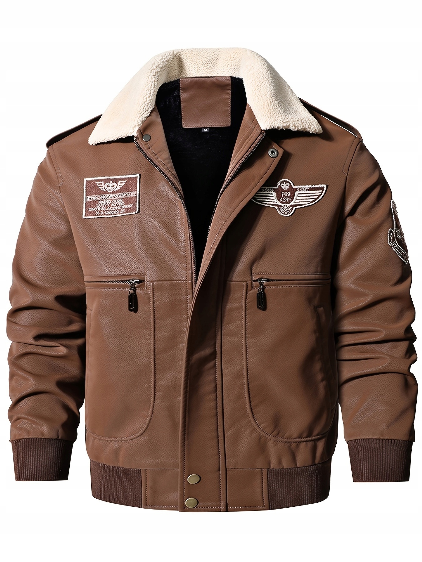 ЧОЛОВІЧА ОСІННЯ МОТОЦИКЛЕТНА ЗИМА ШКІРЯНА КУРТКА З ХУТРОМ ПИЛОТ