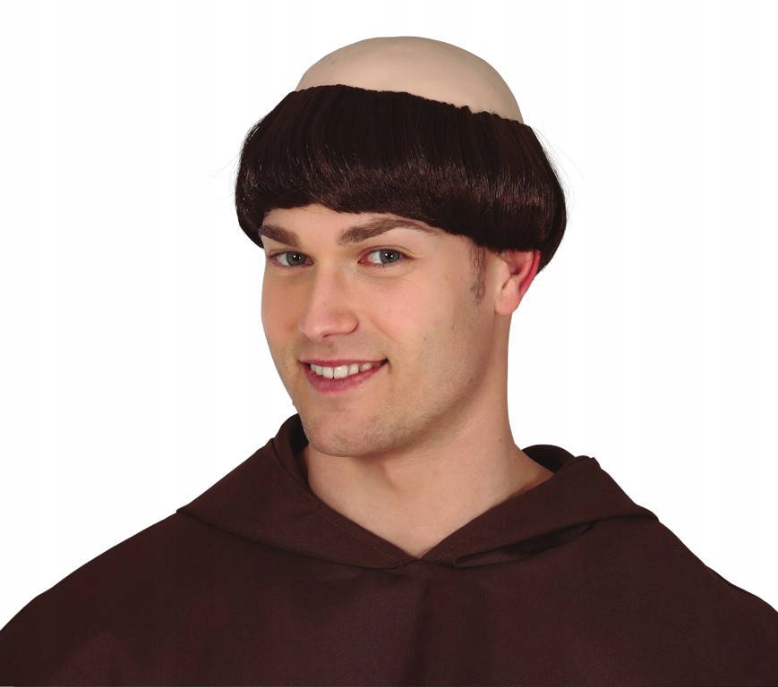 Перука з коричневого штучного волосся та матеріалу, що імітує лисину.