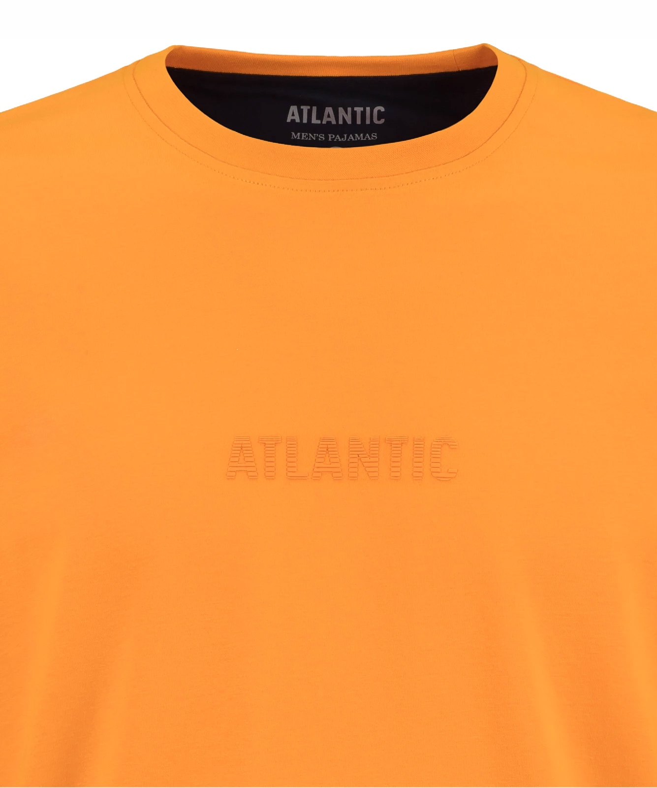Футболка помаранчевого кольору > також гладка, а посередині напис ATLANTIC.