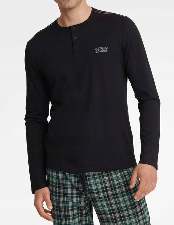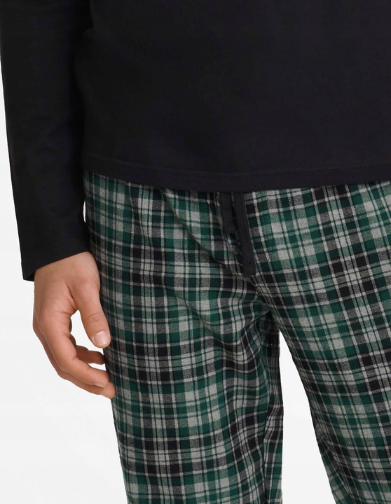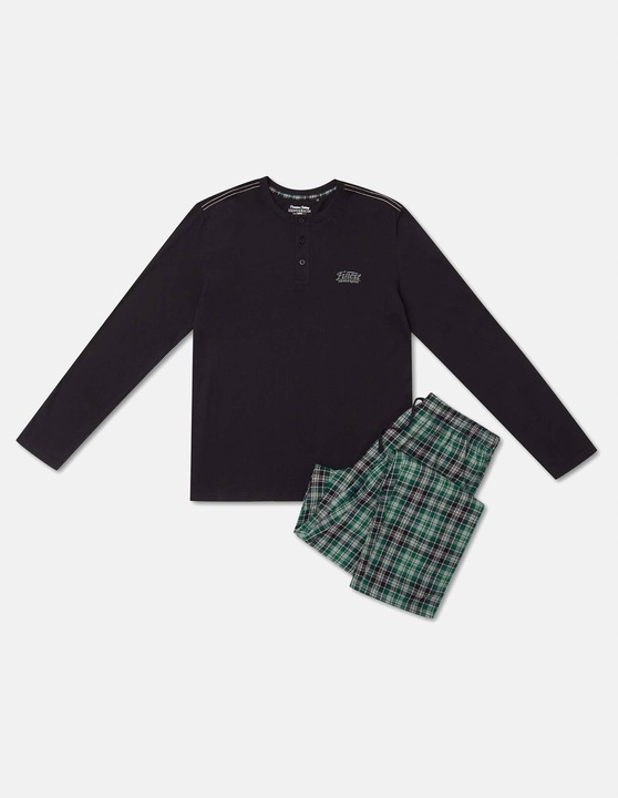 Чоловіча піжама-двійка HENDERSON USHER - це зручний спальний комплект, який складається з вільної футболки з довгим рукавом і довгих штанів. Верх піжами має круглий неглибокий виріз і застібається на 3 гудзики. Штани в клітку мають еластичний пояс із зав'язками для регулювання окружності. Прямі ноги, щоб вони не згорталися під час сну. Комплект виготовлений з якісної бавовни, що забезпечить комфортне використання та комфортний сон.