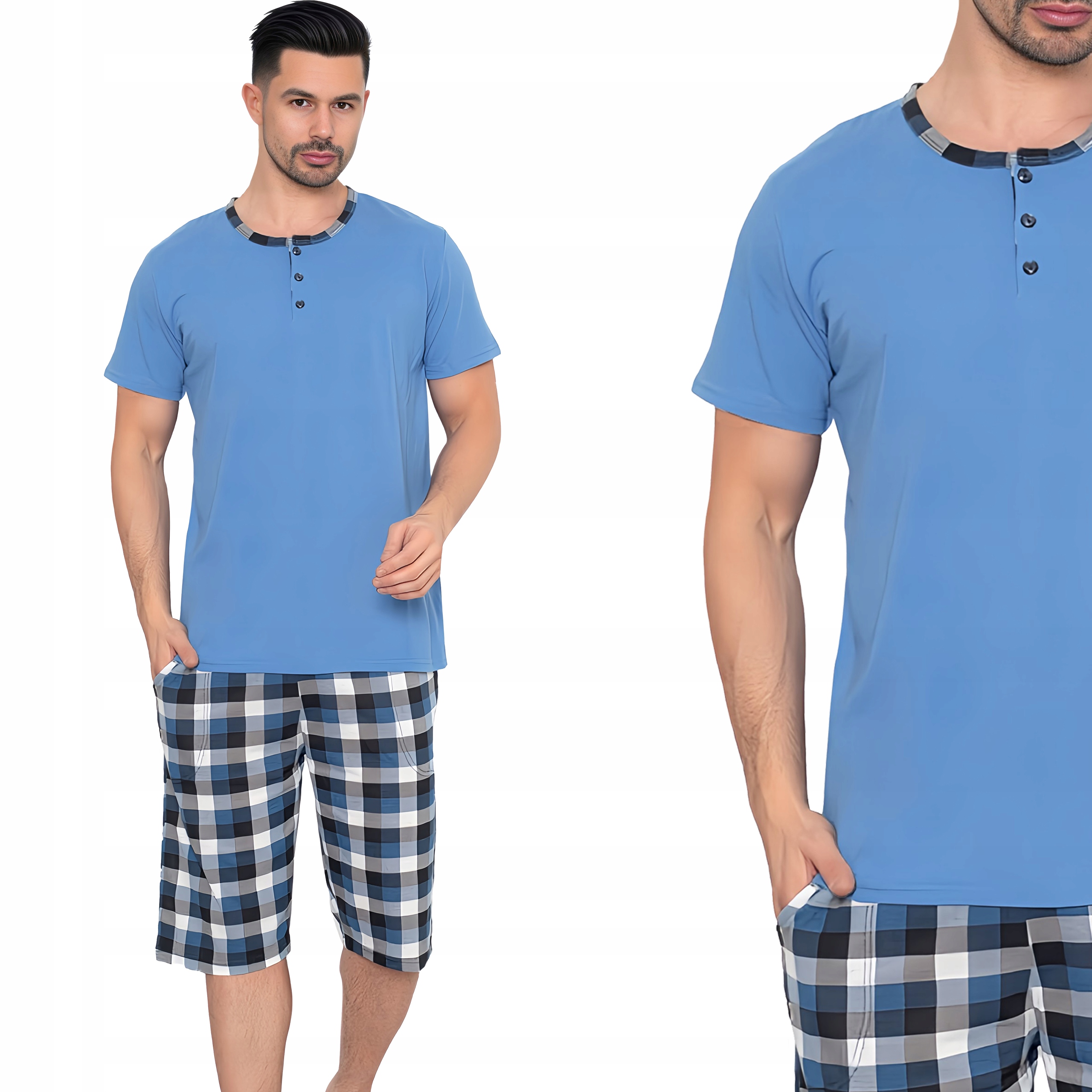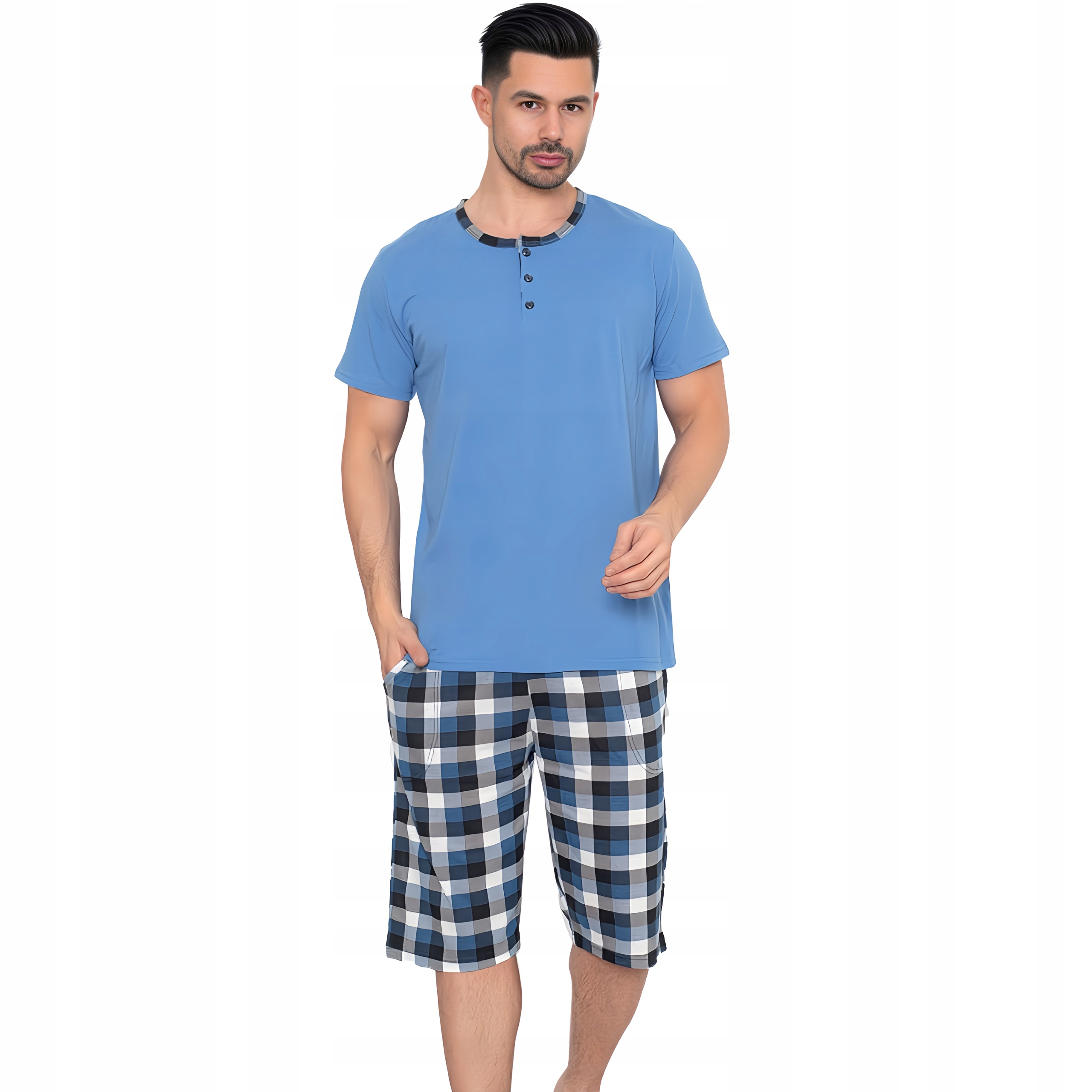 Чоловіча бавовняна піжама з коротким рукавом — це зручна та комфортна нічна білизна, ідеальна для літніх ночей.