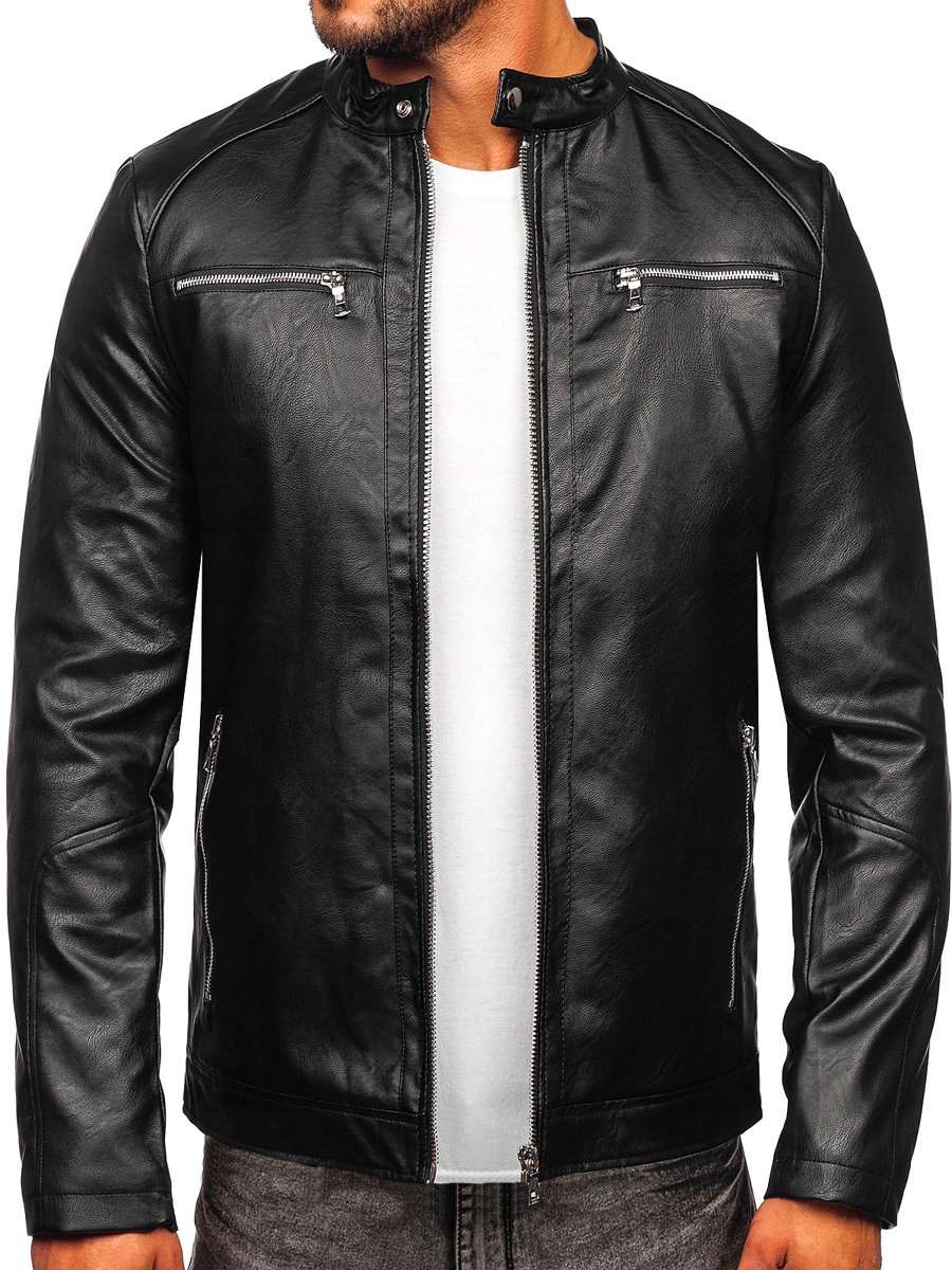 Чорна чоловіча шкіряна куртка Bolf 11Z8003, розмір M