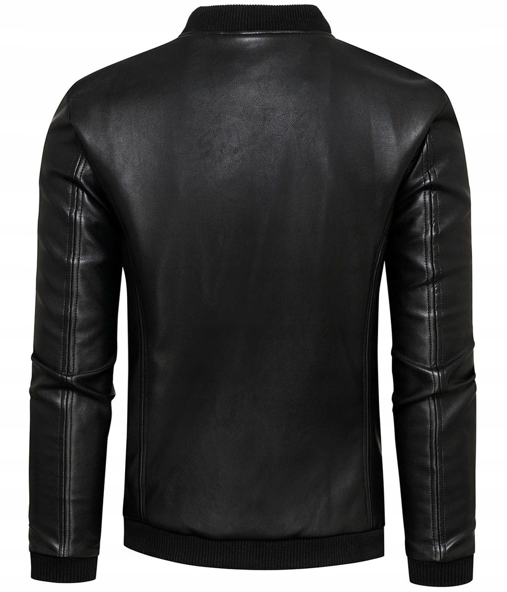 Чорний чоловічий піджак на підставці -комірі. Він має покритий повзунок по всій довжині. Куртка була обладнана підкладкою, що робить його ідеальною курткою для весни та осені. У ньому є поті -тофти на талії та рукавах, завдяки якому він прилягає приємно і має акуратний розріз. Збоку ви знайдете практичні - нарізані кишені, також всередині - один ковзав. Куртка виготовлена з екологічного матеріалу з 100% поліуретаном.