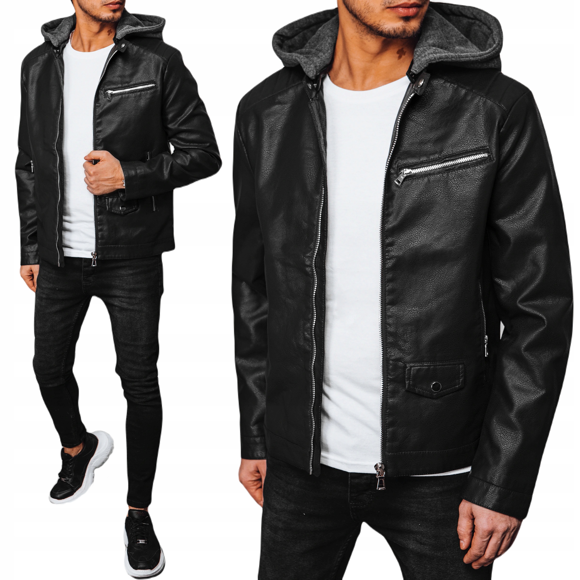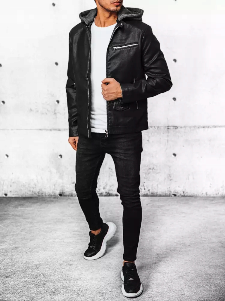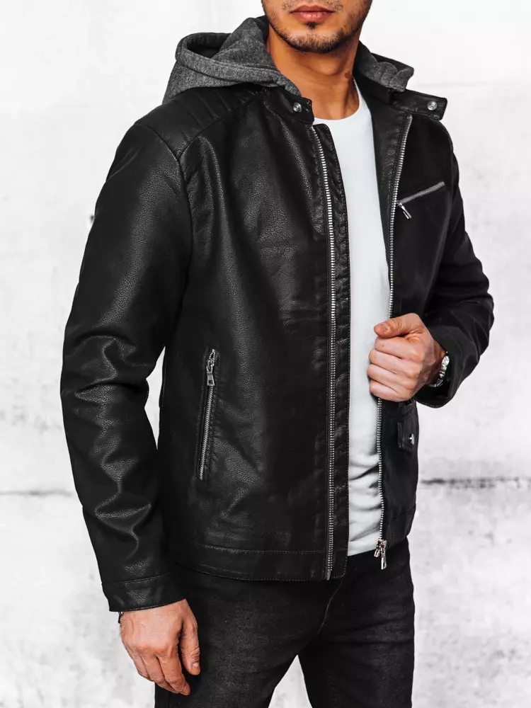 - Чудова чоловіча шкіряна куртка з капюшоном.