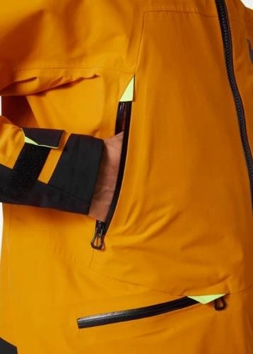 Професійні деталі класу включають, серед інших, регульований капюшон з прозорим дахом та елементами з підвищеною видимістю, водонепроникними кишенями, кришкою обличчя, закопаною на комірі, відбиваючими елементами відповідно до конвенції Солас. Все, що вам може знадобитися в морі, піклувалося в дуже вимогливих погодних умовах. В інтересах природного середовища мембранний шар був виготовлений з матеріалу з домішкою 48% вторинної сировини. recycling