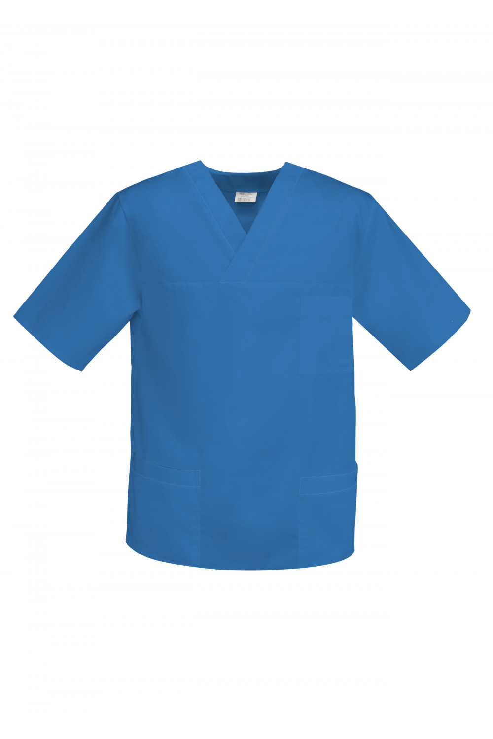 Зручна чоловіча медична сорочка з коротким рукавом. Зручний крій, що не сковує рухів. Натягується через голову, V-подібний виріз. Світшот також має дві великі бічні кишені та одну меншу на грудях, дуже корисну під час роботи.