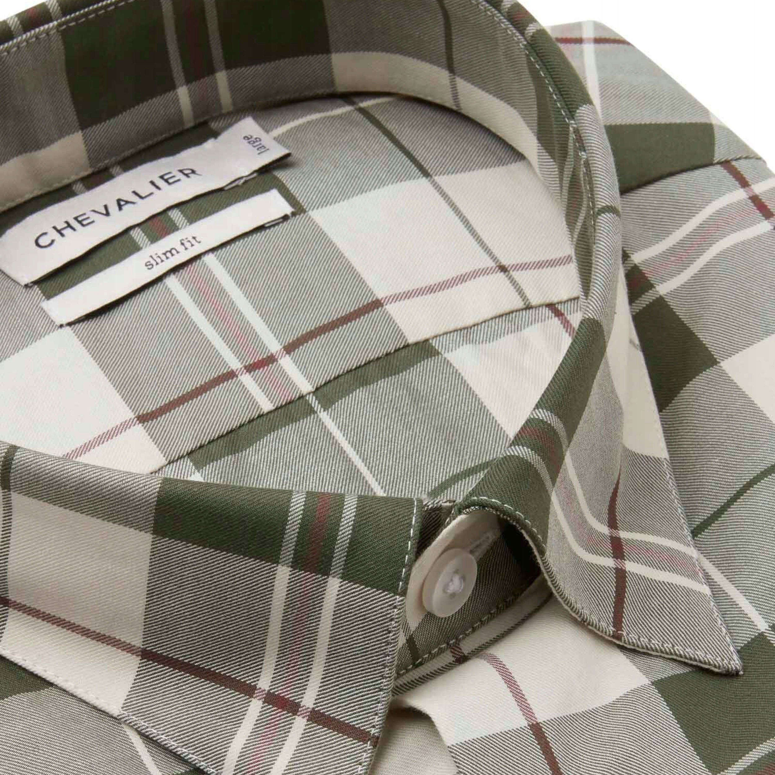 Chevalier Carlton – це міцна чоловіча сорочка в клітку. Виготовлений з міцної бавовняної тканини, збагаченої еластаном. Матеріал м'який і зручний, дихаючий і гнучкий. Тканина мерсеризована, що надає сорочці додатковий блиск і м'якість, а також полегшує догляд.