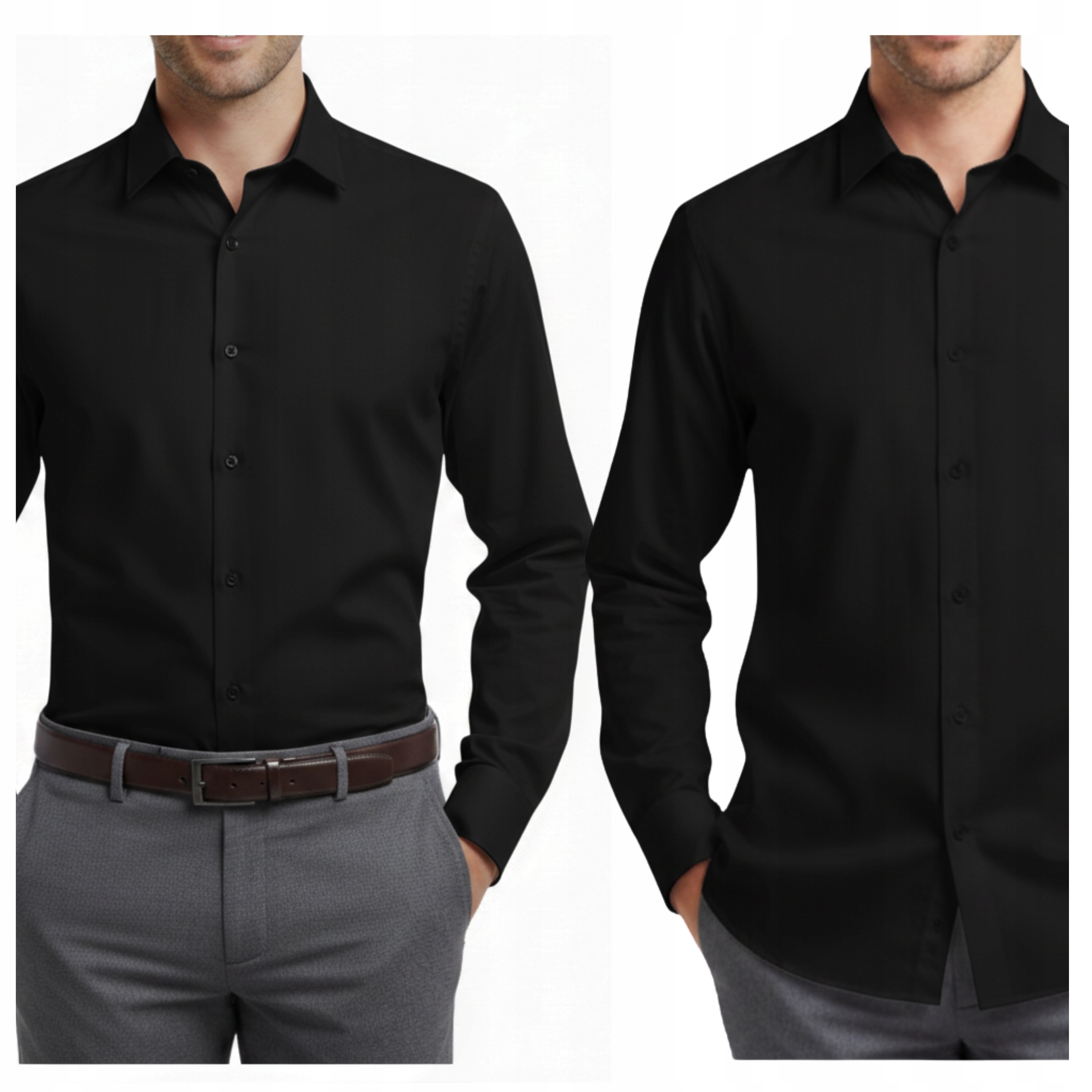 Елегантна чорна чоловіча сорочка звичайного крою з високоякісної тканини (60% бавовна, 40% поліестер). Класична модель з напівіталійським коміром і довгим рукавом - ідеальний вибір для ділового та стильного casual стилю. Гладкий, позачасовий, натхненний італійським стилем - гарантія елегантності та комфорту щодня.