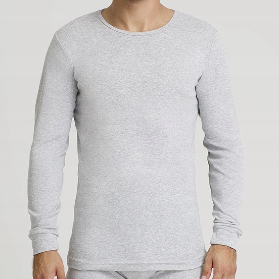 Зимова чоловіча t -сорочка з довгими рукавами у світло -сірому меланзі. Рухи закінчувалися підйомником, завдяки якому вони невидимі після зовнішнього одягу. Напівзірковий Дікет, матеріал -100% бавовна, дуже приємний на дотик, злегка ізольований зсередини. Фактура з ніжним ремінцем.