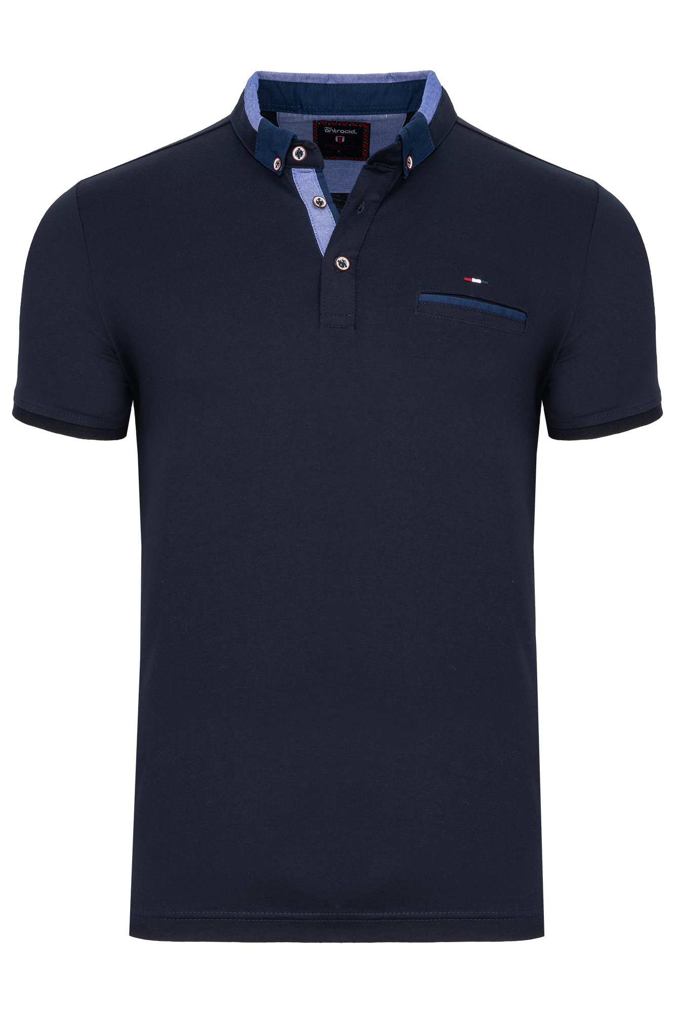 ЧОЛОВІЧА СОРОЧКА ПОЛО ТЕМНО-СИНЯ ГЛАДКА КИШЕНЯ XXL