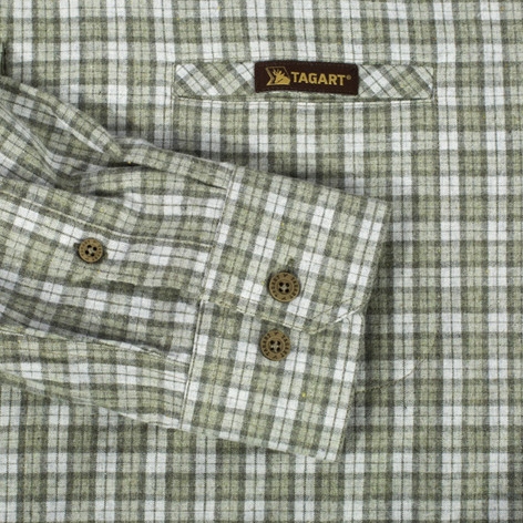 Мисливська фланелева сорочка Tagart Oakна основі суміші поліестеру та бавовни, що поєднує в собі переваги обох матеріалів. Сорочка виконана в мисливсько-спортивному стилі, підтримується коміром на гудзиках і повсякденним візерунком у клітку, нанесеним на тканину сорочки. Гудзики з імітації рогів додають сорочці мисливський характер, а кишеня на грудях дозволяє носити дрібні аксесуари, наприклад тканину для окулярів або беруші.