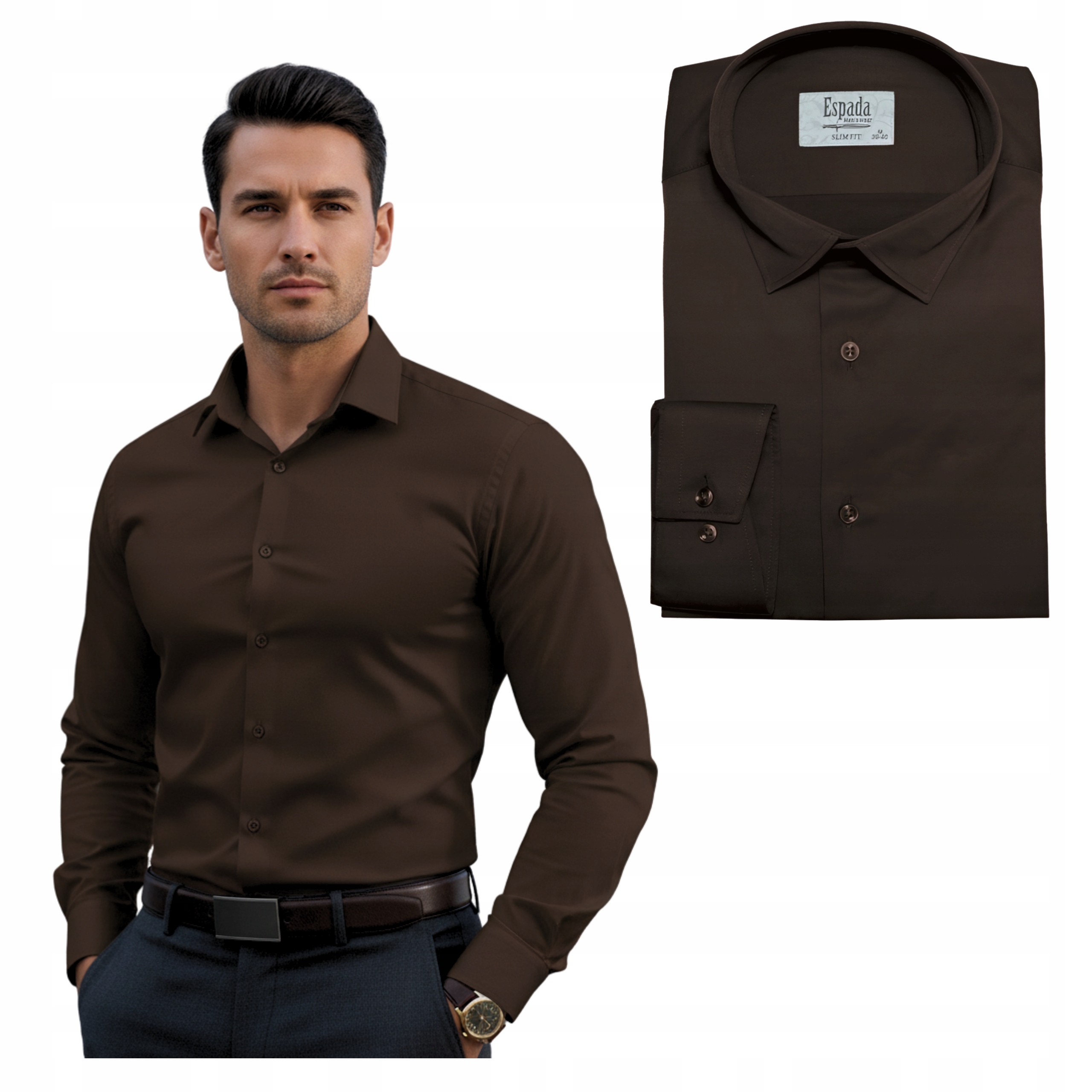 Чоловіча сорочка Slim Fit Espada – коричневий шоколад