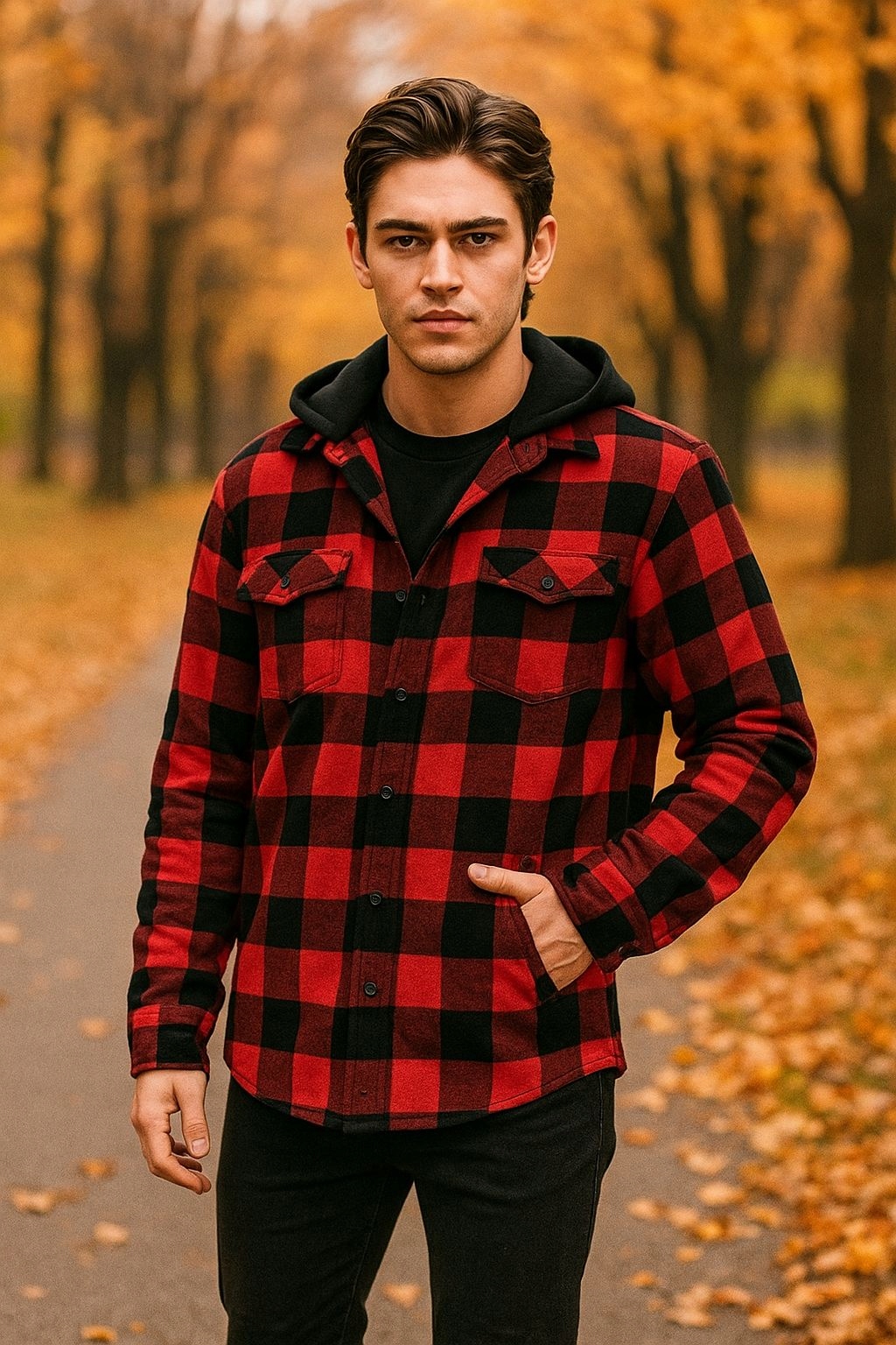 Чоловіча утеплена картата сорочка з капюшоном – повсякденний стиль для холодних днів
