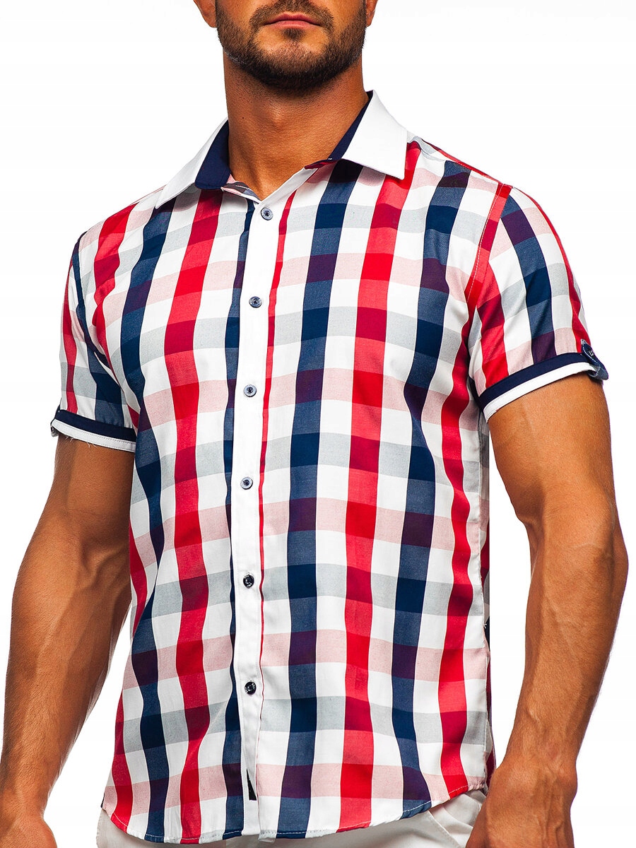Елегантна чоловіча сорочка в клітинку з коротким рукавом, червона Bolf 8901, розмір XL