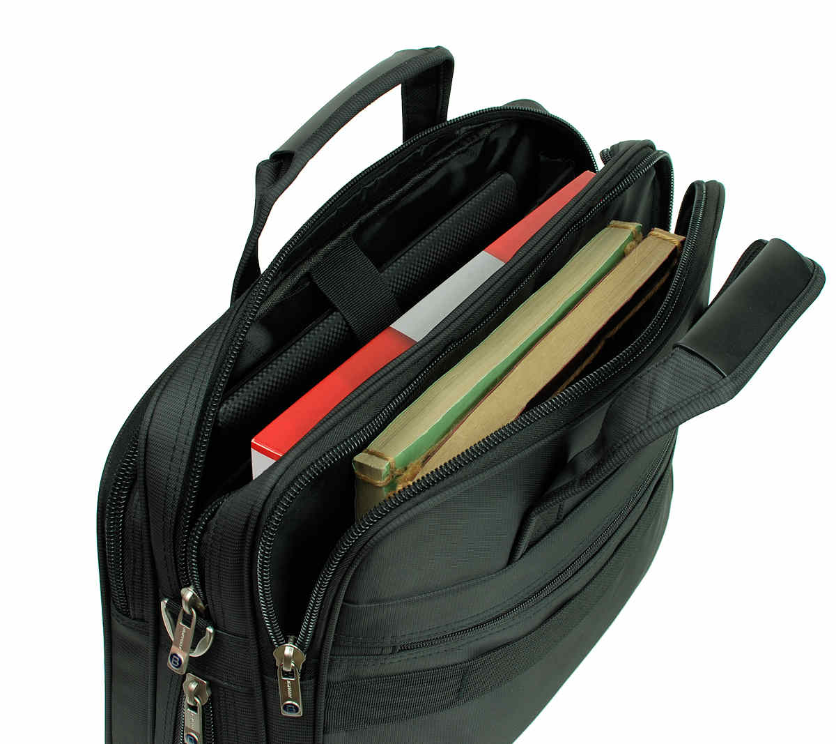 Сумка класичного дизайну підходить як до елегантного, так і до повсякденного одягу. Ідеально підходить для транспортування документів, побутової електроніки та повсякденних речей. Виготовлений з поліефірної тканини, укріпленої знизу поліуретановим покриттям. Всередині оздоблений підкладкою та посилений гнучкою піною. Має 10 різних кишень, у тому числі 6 на блискавках. Найбільше відділення має розміри 30 x 40 x 6-9 см і містить перегородку на липучці 29 x 36 x 4 см. Ззаду є кишеня 30 х 40 х 3 см для документів, газет і одна менша на блискавці. Спереду є місце для ручок, телефону і т. д. Зовні потайна кишеня на блискавці ззаду, поруч місце кріплення для дорожніх валіз. Сумка має ручки для носіння в руці та регульований знімний ремінь із наплічником максимальної довжини 135 см.