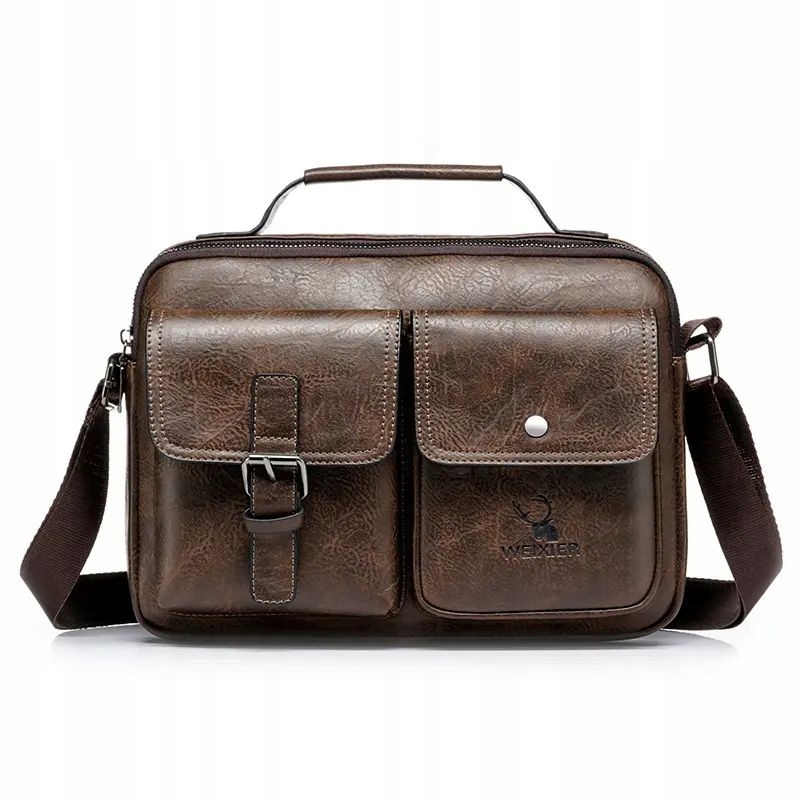 ЧОЛОВІЧА СУМКА НА ПЛЕЧІ МАЛЕНЬКА СУМКА ЧОРНО-КОРИЧНЕВА КИШЕНІ НА РОБОТУ