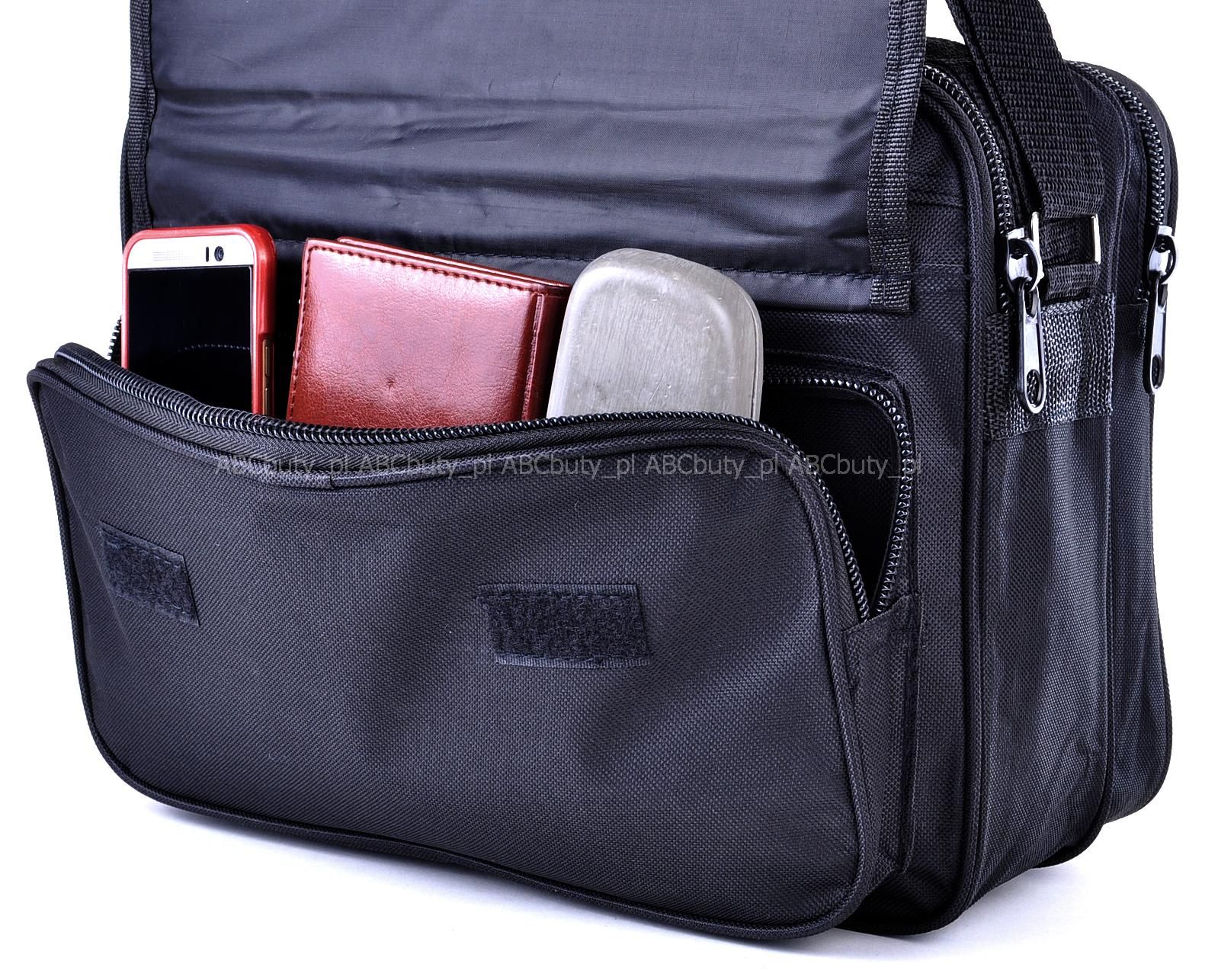 G3-95 - Чорна горизонтальна маленька чоловіча сумка через плече з клапаном.