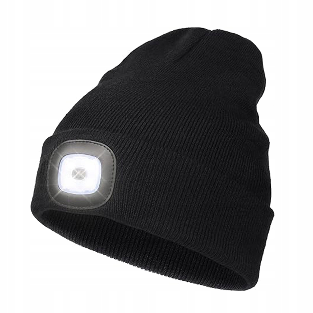 Чоловіча тепла жіноча зимова шапка, двошарова, чорна зі світлодіодним USB-ліхтариком