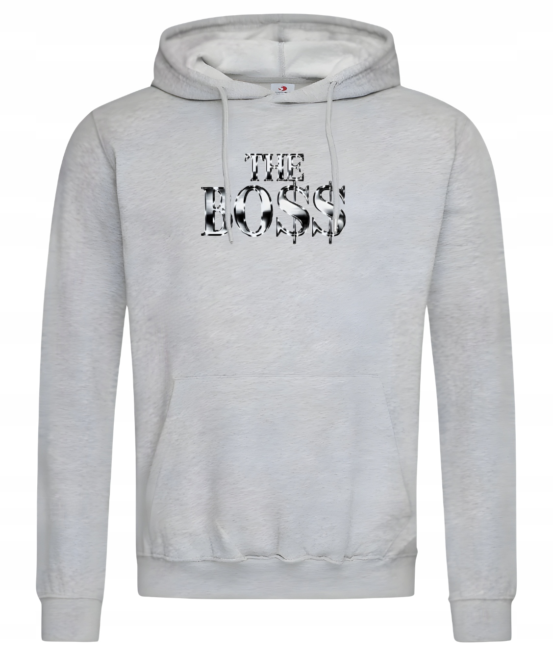 На малюнку зображено слова "THE BO$$" у металевому блискучому стилі, що надає йому елегантного та професійного вигляду. Літери SS були замінені символами долара $$, що надає дизайну характер розкоші та фінансового успіху. Такий дизайн ідеально підходить для людей, які хочуть підкреслити своє становище, авторитет або просто почуття гумору, пов'язане з посадою «боса». Блискучий ефект літер додає сучасний характер, завдяки чому світшот виділяється з натовпу та привертає увагу.