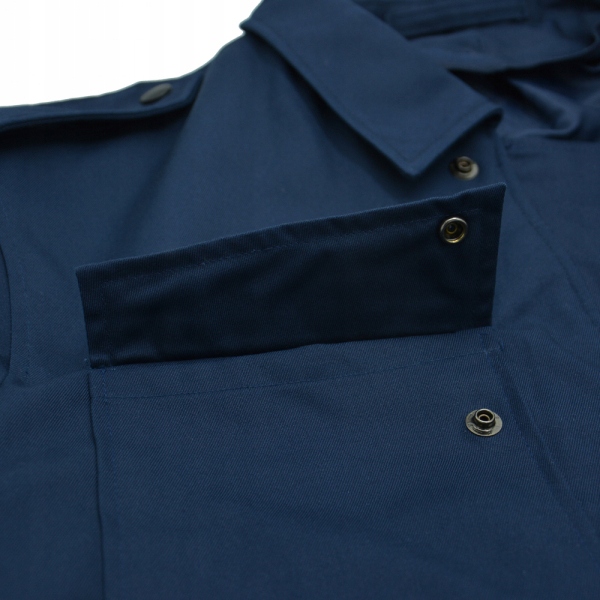 Оригінальна куртка голландської армії, яка використовується підрозділами ВПС. Він виготовлений із суміші високоякісного матеріалу, що складається з 65% поліестеру, 35% бавовни. Це темно-синій (Navy Blue). Застібається на блискавку. Має дві кишені на рівні грудей і відкладний комір. Ідеально підходить для роботи, для механіка, для поїздки за місто або для щоденного використання. Куртка в хорошому стані, має незначні сліди використання та солдатські помітки. Вони також можуть бути запиленими через час, який вони провели на полицях для зберігання. Однак він на 100% функціональний і придатний для використання.