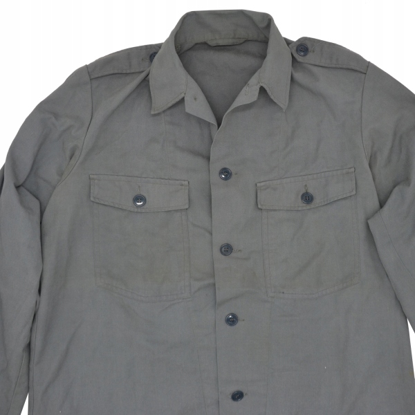 Оригінальна солідна чоловіча військова сорочка із запасів голландської армії. Виготовлений у сірому кольорі, має довгі рукави. Має дві кишені на рівні грудей, які застібаються на гудзики. Сорочка має еполети