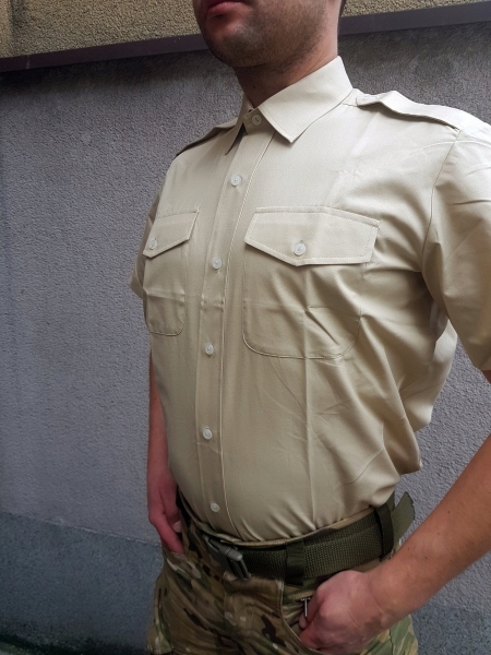 Сорочка легка та зручна, виготовлена з парусини та бавовняного матеріалу. Оснащений еполетами і застібається на гудзики. Сорочка має дві нагрудні кишені.