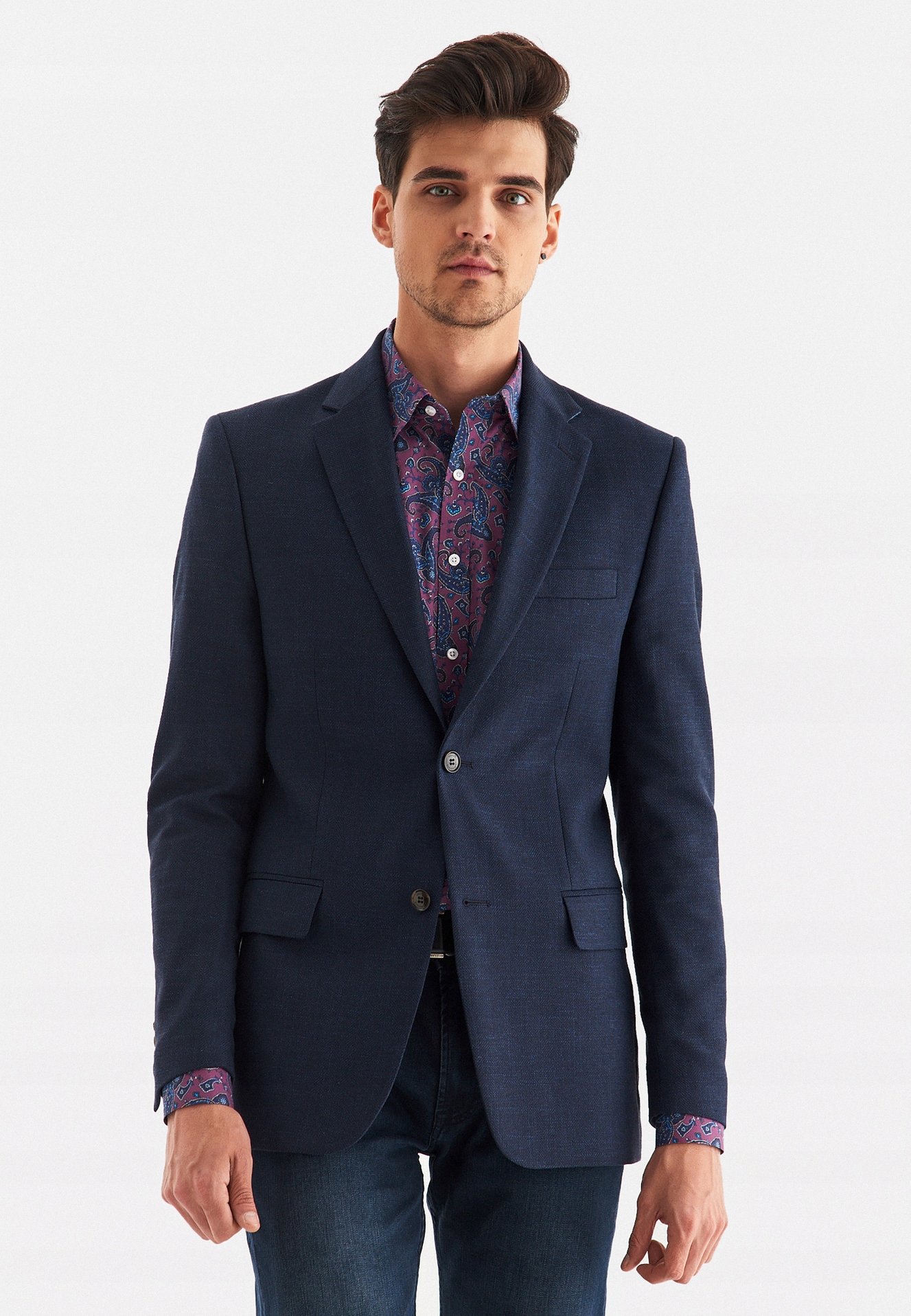 Чоловіча темно-синя куртка преміум-класу відPako Lorente. Модель виготовлена з тканини, що складається з 47% вовни Марлан, 40% бавовни, 10% льону, 2% поліаміду і 1% еластану. Крій Slim Fit, завужений в талії, який ідеально підкреслює достоїнства чоловічої фігури. Класичний фасон піджака незмінного темно-синього кольору обов'язково повинен бути в гардеробі кожного чоловіка. Підходить як для великих випадків, так і для щоденного використання.