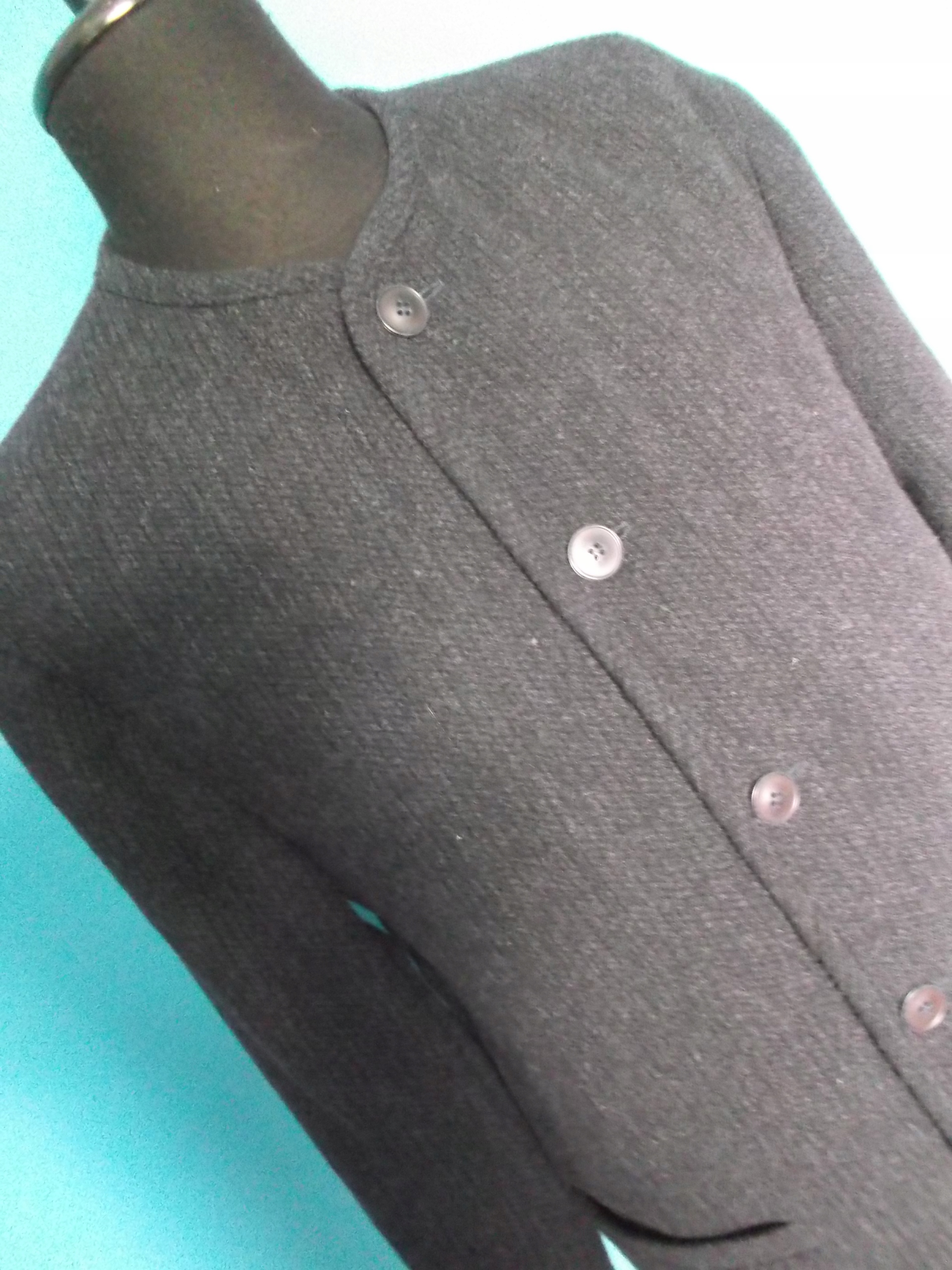Вона виготовлена з матеріалу 60% нова вовна + 30% поліестер + 10% поліамід, тканий в товсту смужку на вигляд трикотажу темно-синього кольору з більш світлою ниткою.