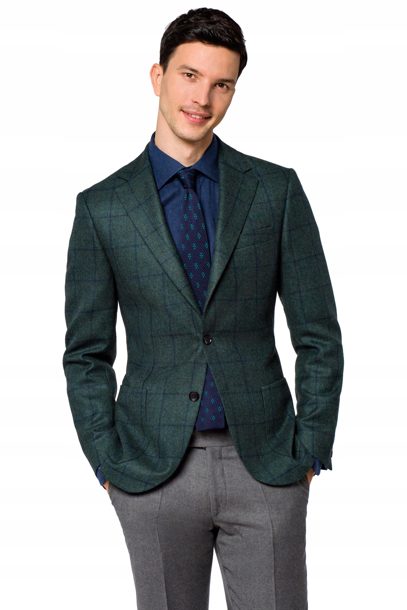 Меган елегантна , зелений піджак у клітку, ідеально підходить для осені та зими. Темно-синя клітка на зеленій тканині та кишені у формі фужерів разом із простою нагрудною кишенею вказують на італійське пошиття.